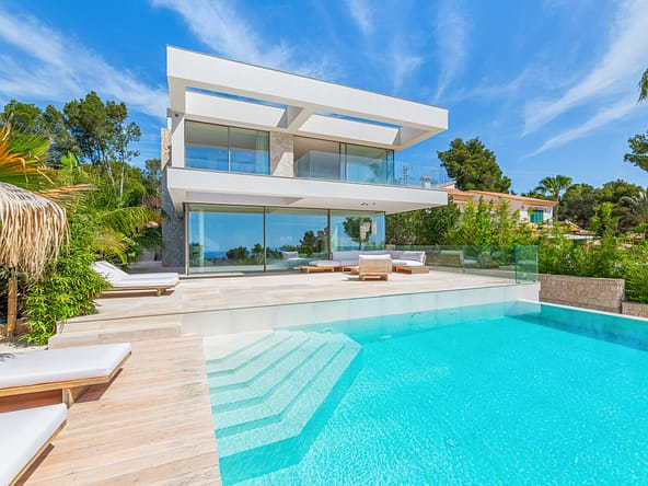 Perched high above the popular coastal town of Camp de Mar, this newly built designer villa is an architectural masterpiece set within a 1,117 sqm hillside plot. Boasting a...