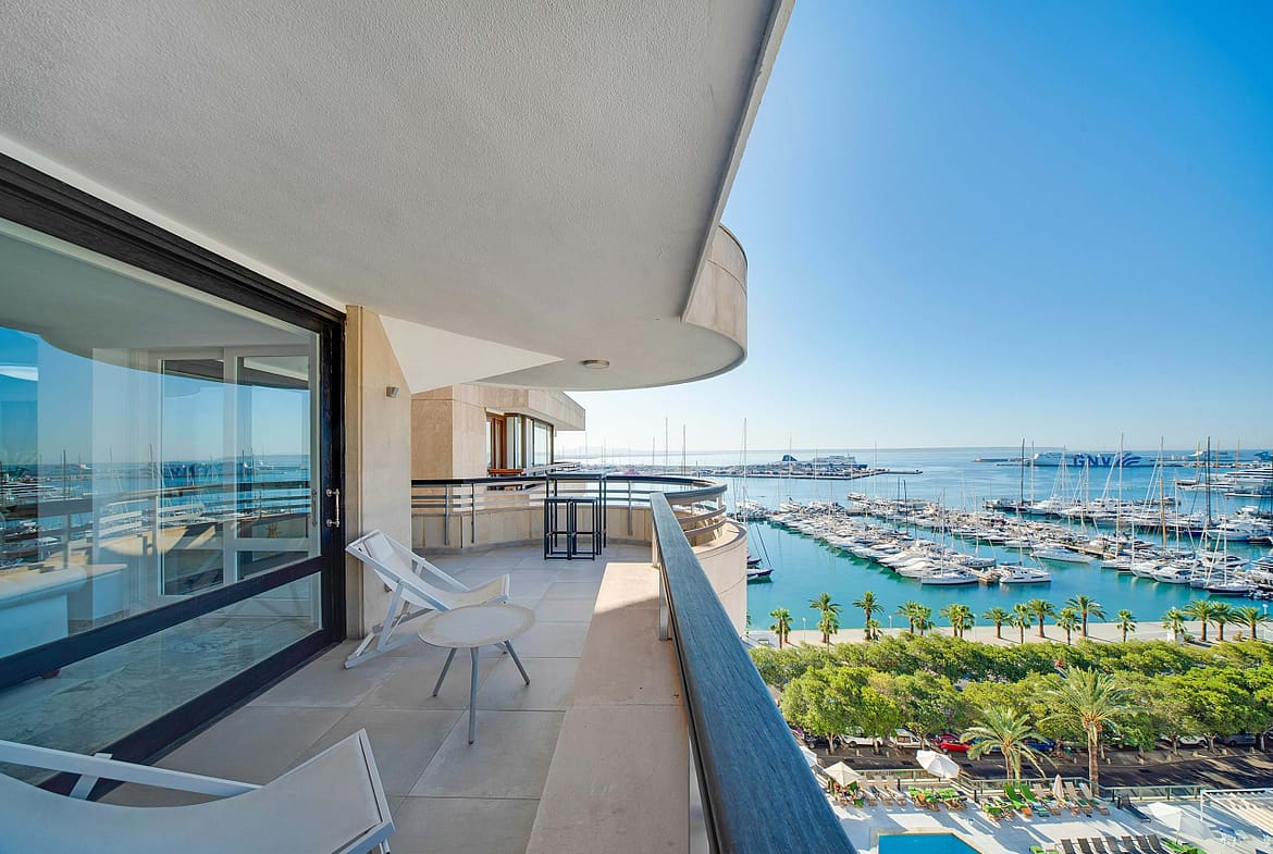 Spectacular penthouse on the Paseo Marítimo with unobstructed views of the sea and harbor. The spacious living and dining area impresses with elegant marble floors, a stylish fireplace, and...