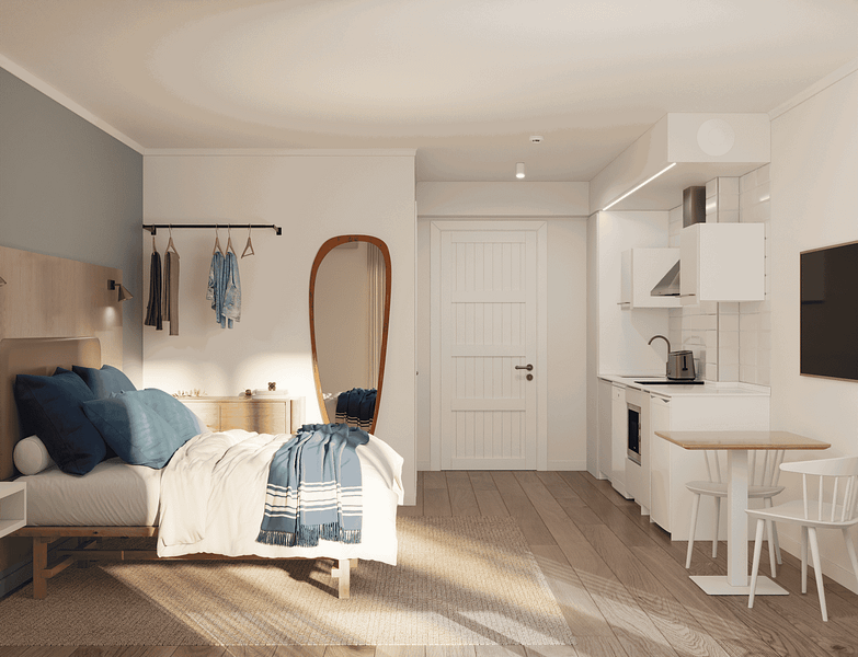 Choice of studios, 1-bedroom, and 2-bedroom apartments
