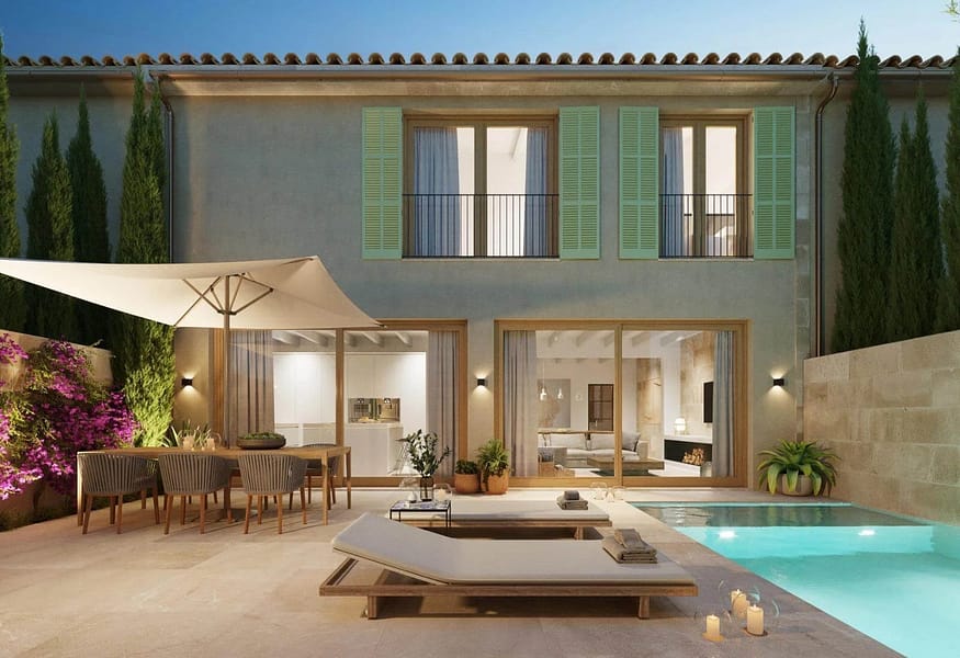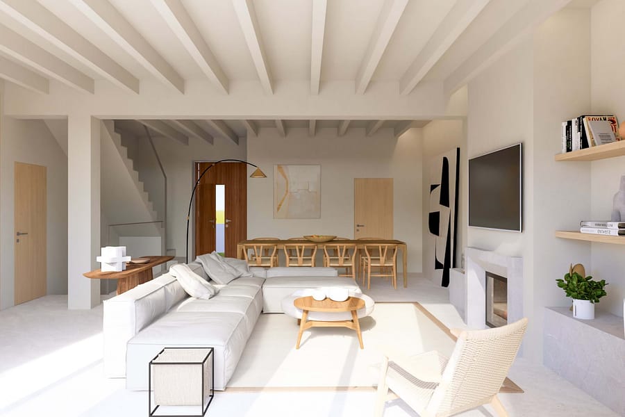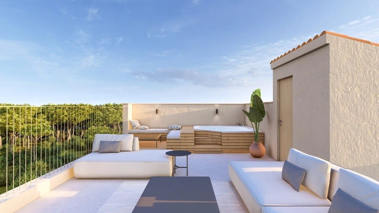 In the heart of Ses Salines, Can Romaní is a luxury new build townhome for sale in Mallorca that seamlessly combines traditional Mallorcan charm with modern design and comfort.