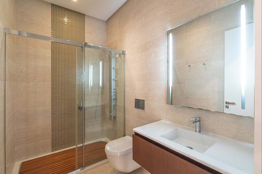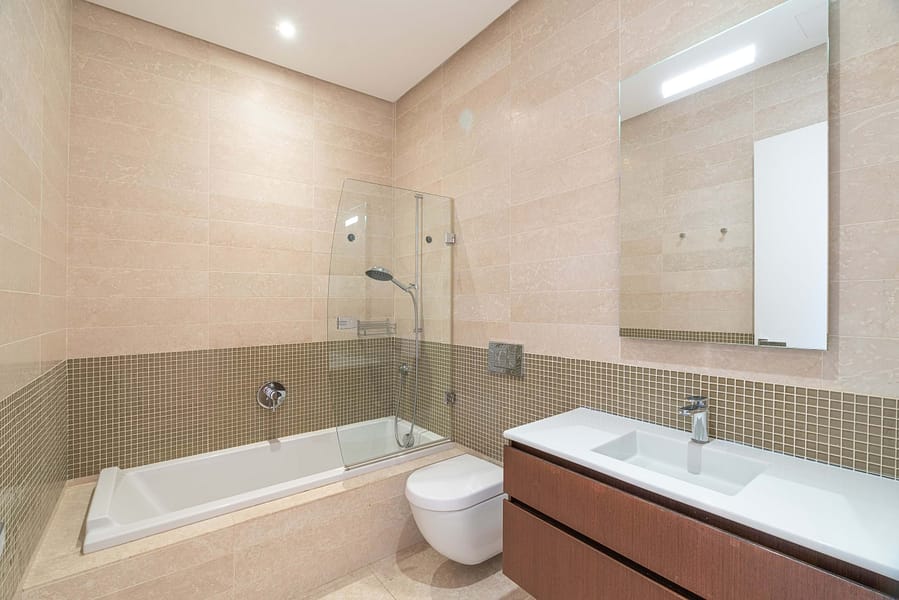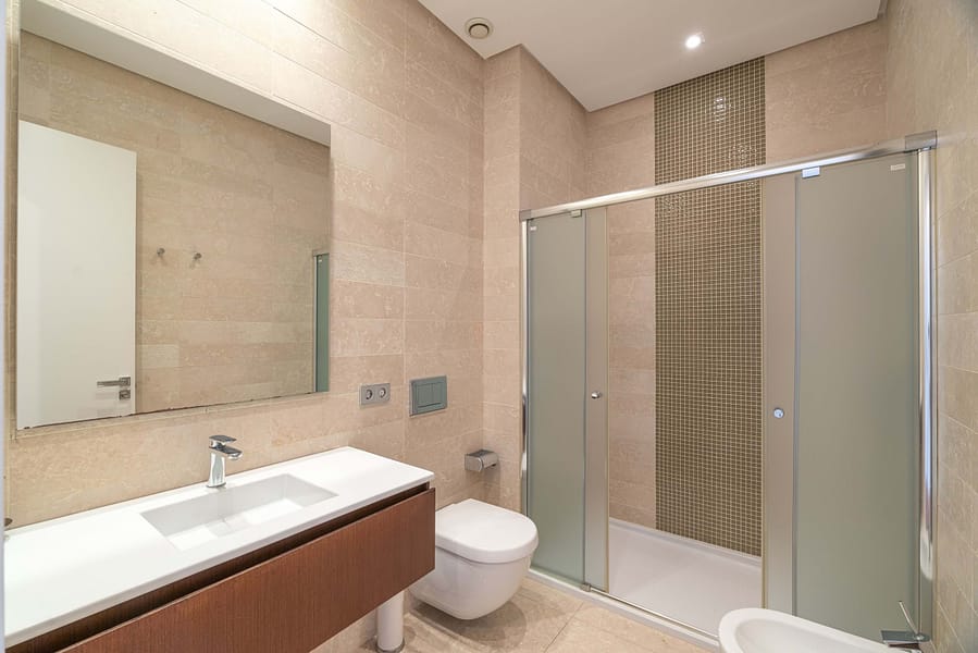 The living quarters are equally impressive, featuring an expansive master sanctuary with a luxurious en-suite bathroom that boasts a deep soaking tub and separate rain shower set against elegant sage-green plaster work. Two additional well-appointed bedrooms offer the privacy of en-suite facilities, while a professional-grade kitchen complete with a massive white waterfall island. And high-end stainless steel ventilation stands ready for the most discerning chef.