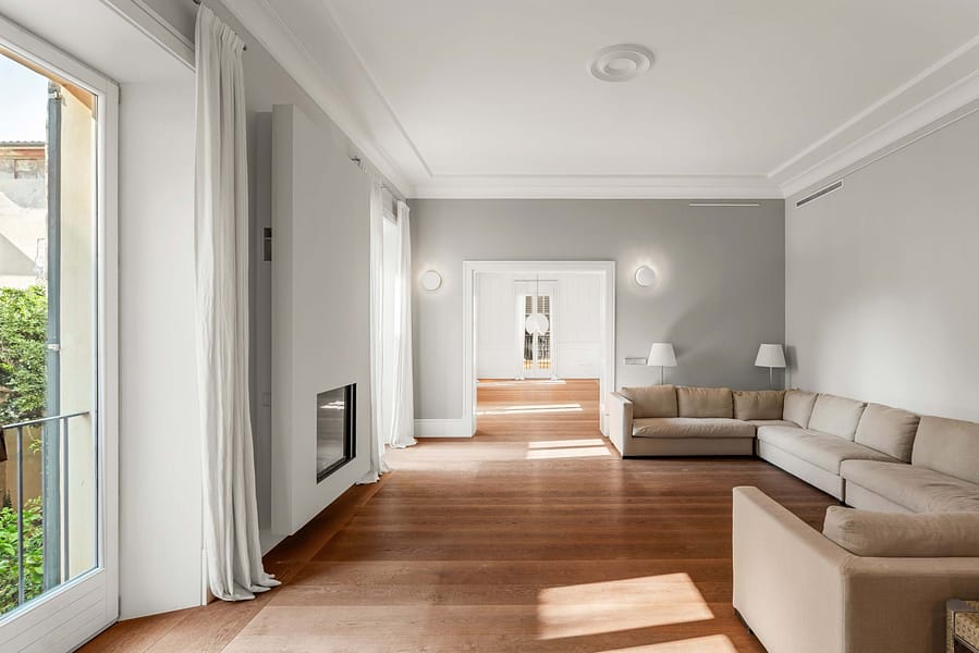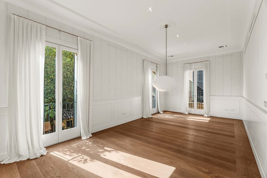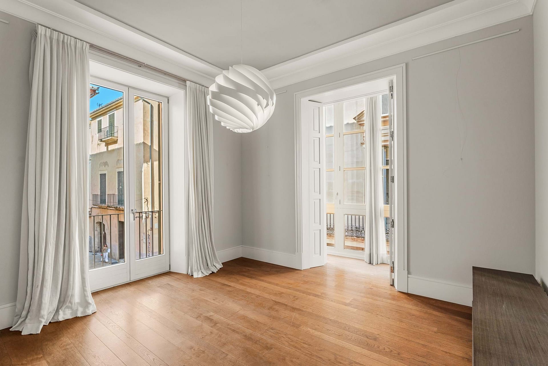 Experience the pinnacle of Mediterranean elegance in this magnificent 406sqm noble floor residence, situated within a prestigious 150-year-old estate in the sought-after San Jaime quarter of the Old Town. This imposing property seamlessly blends its storied heritage with a meticulous renovation, resulting in a home characterized by majestic proportions and a clean, sophisticated design.