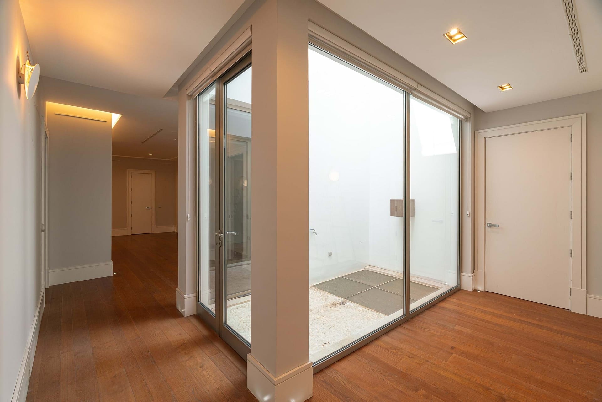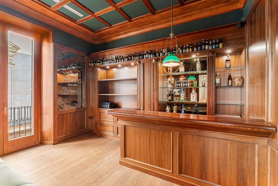 For social gatherings, a secondary lounge reveals a breathtaking original full bar. Richly paneled in warm wood with an intricate coffered ceiling and vintage-style lighting. Providing a nostalgic, dedicated environment for entertaining guests. Bathed in natural light through towering floor-to-ceiling windows and featuring a unique glass-walles internal patio. The residence is finishes with a refines combination of wide-plank solid wooden floors and high-quality stone tiling. This rare architectural treasure offers the added convenience of elevator access. And an included parking space nearby, representing a premier opportunity for luxury living in a truly prime location.