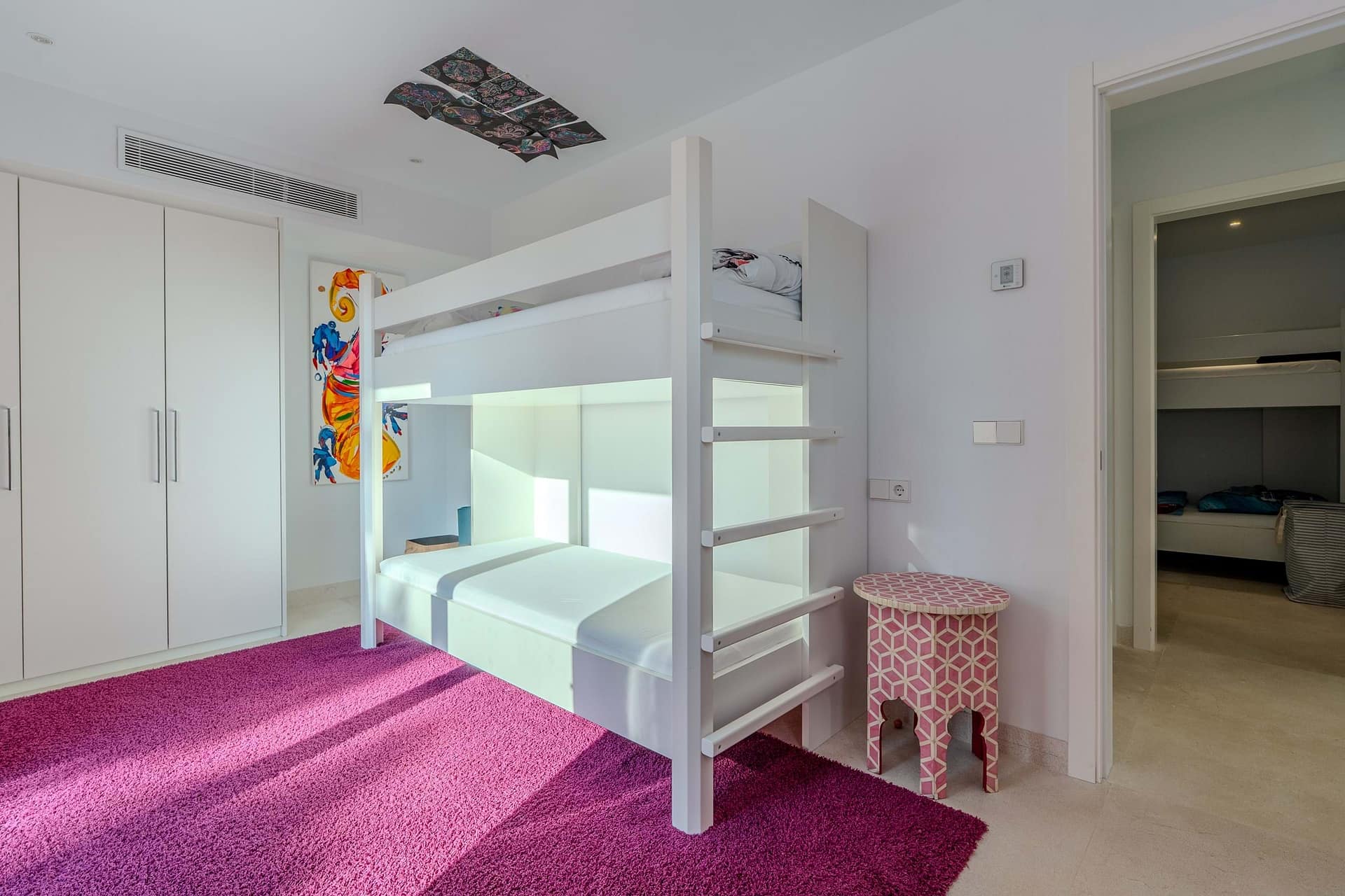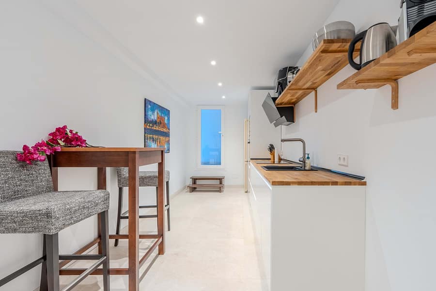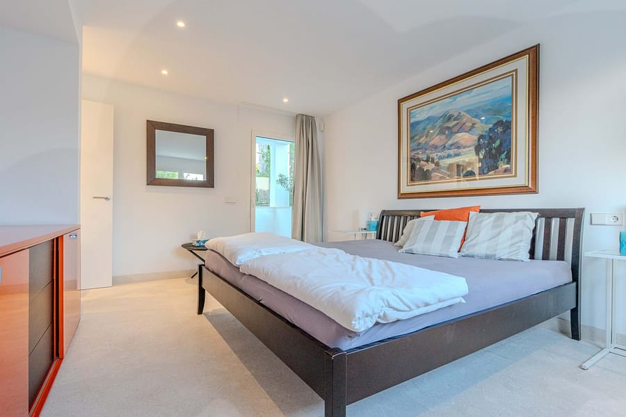 Beyond its impressive design, the property is optimized for modern convenience and security within a gated community featuring 24-hour surveillance. The lower floor functions as a self-contained apartment with its own kitchen and living space, making it ideal for large families or shared living. Equipped with high-speed WiFi, climate control, and a two-car garage, the villa ensures a seamless transition for stays ranging from one to six months. Its prime location places you just minutes from the high-end boutiques and dining of Puerto Portals, while remaining a short 15-minute drive from the vibrant energy of Palma.