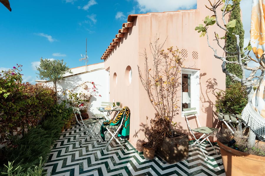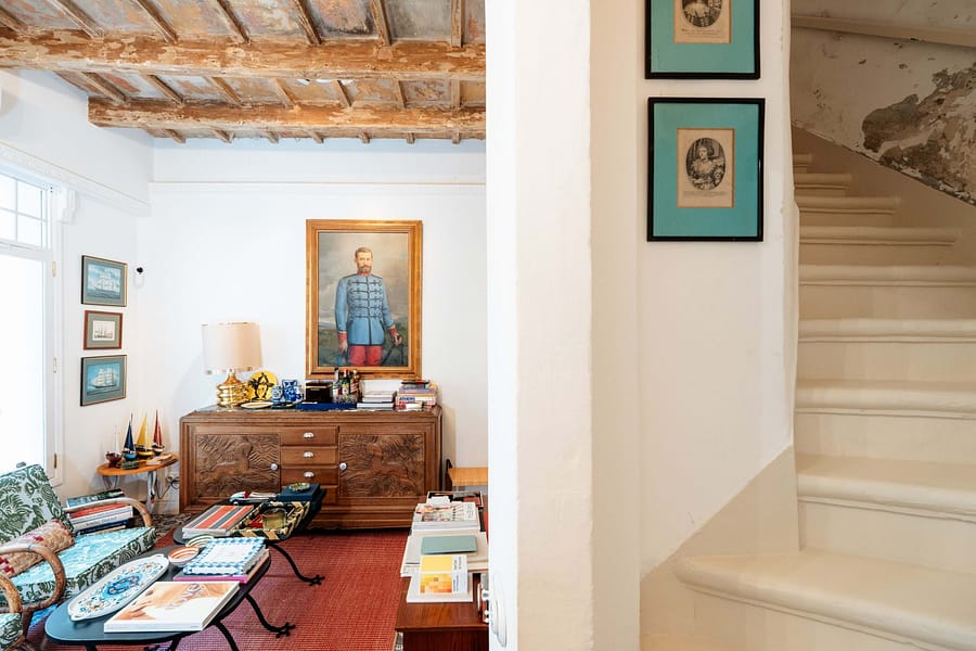 The nearby historic windmill lends a poetic backdrop, especially at sunrise, when the rooftop terrace enjoys open views across the city. Thoughtfully restored as the private retreat of architect and interior designer Jean Porsche, the property seamlessly combines preserved period features with a refined, highly personal aesthetic.