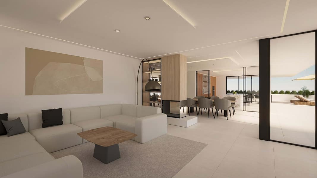 Outside, you’ll be captivates by a breathtaking infinity pool area with panoramic views. A low-maintenance Mediterranean garden, and a dedicated chill-out zone that invites you to relax year-round.