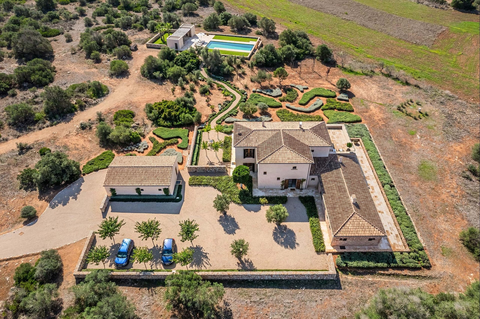 Here, in the idyllic landscape of Santanyí, Mediterranean nature and modern architecture merge into a harmonious whole.
