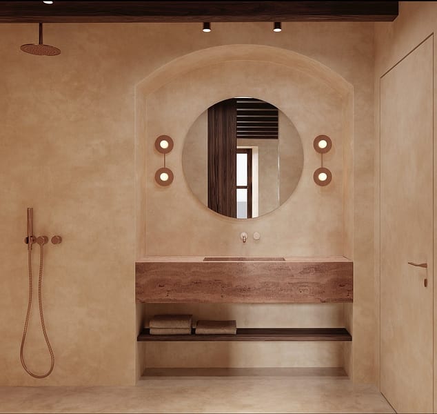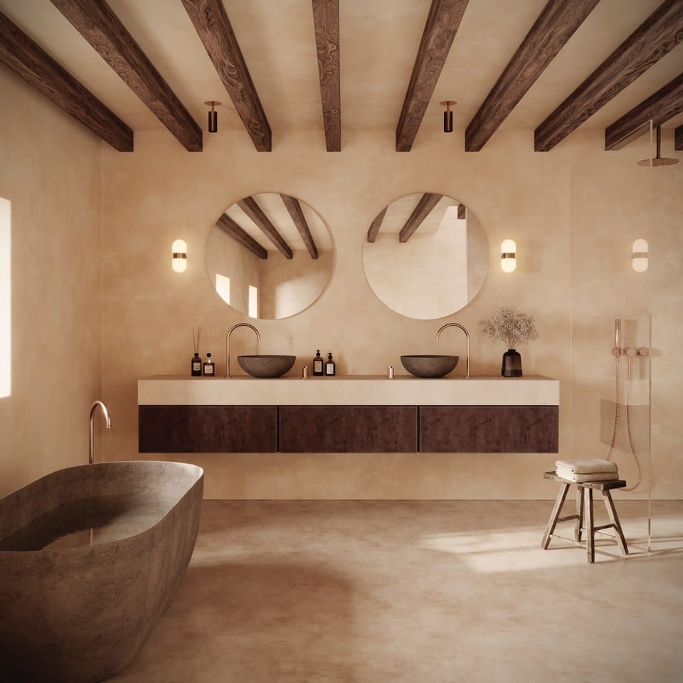 The design is guided by principles of conscious luxury, where scale, harmony, and natural materials are carefully balanced. Lime-washed, breathable walls and locally sourced elements support a healthy indoor climate, complemented by grounded electrics, underfloor heating, and integrated air conditioning for year-round comfort. VOC-free finishes and low-toxicity materials have been selected throughout to ensure excellent air quality and long-term wellbeing.