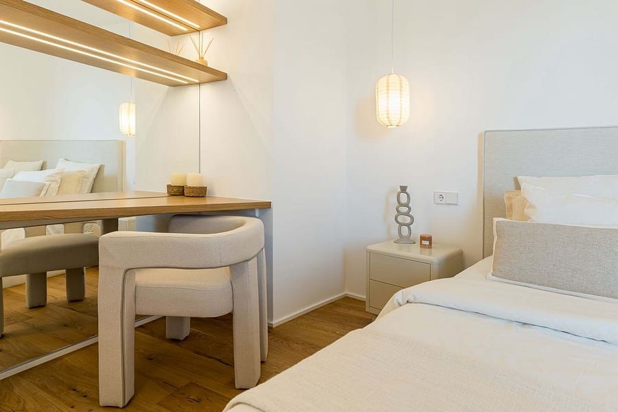 This home has been redesigned with high-quality materials, warm natural tones, and a refined Mediterranean style, creating a peaceful and elegant living space.