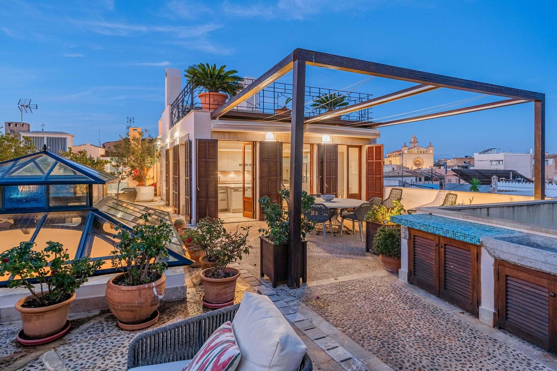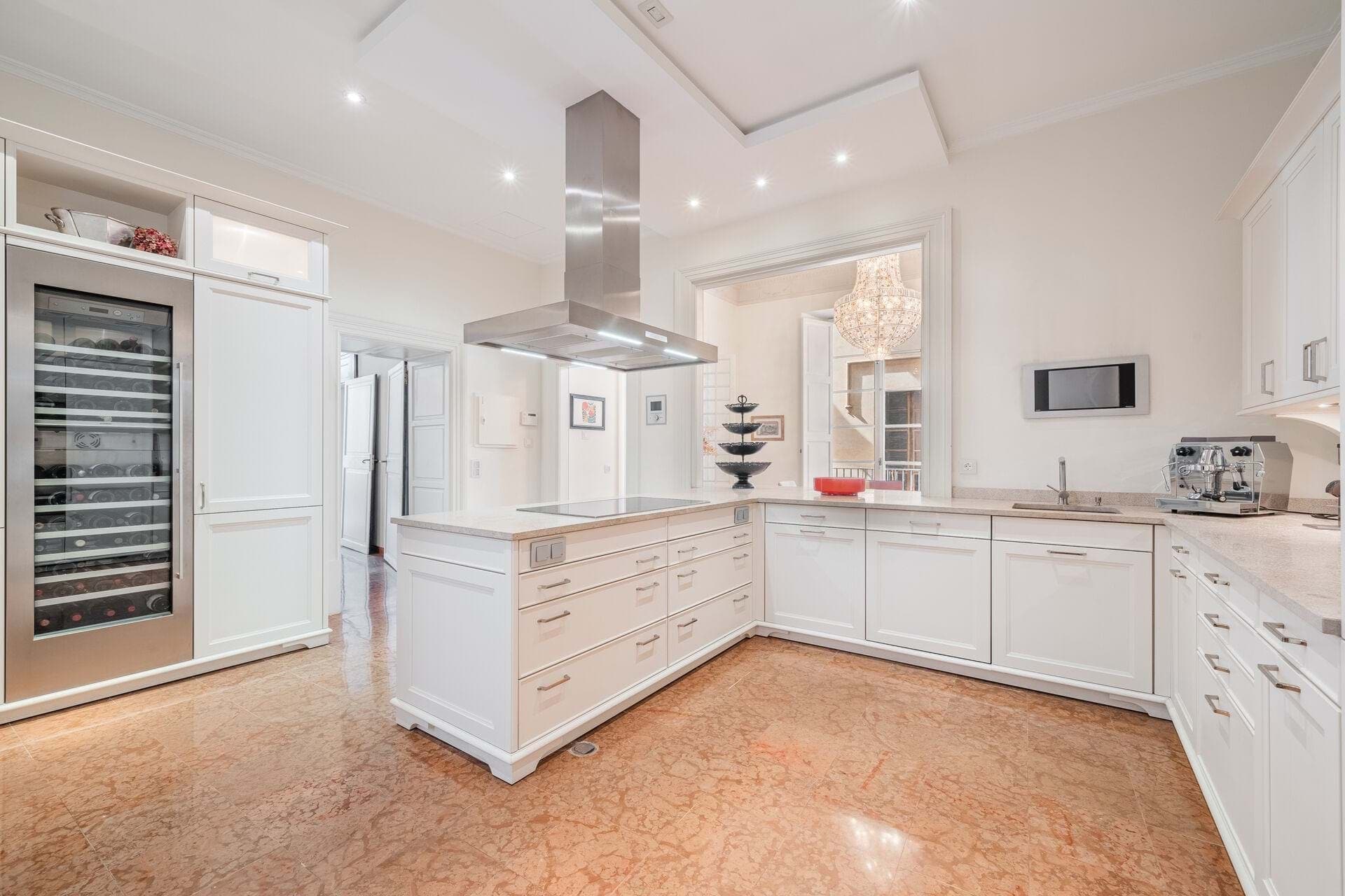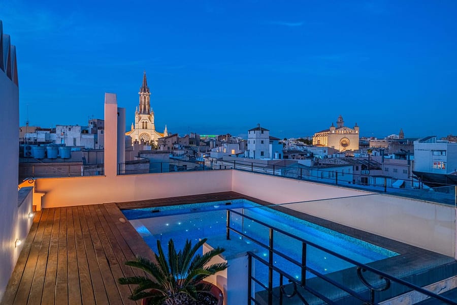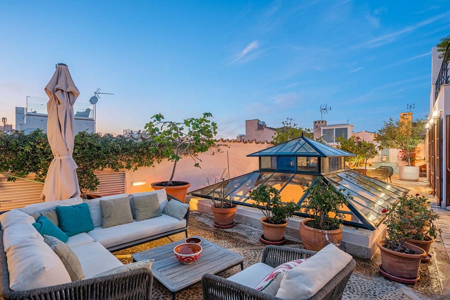 The property offers a rooftop pool and garden sanctuary with breathtaking views of Palma, the cathedral, and the Sierra Tramontana mountains. Its design includes a wine cellar and tasting room, expansive reception spaces, and opulent guest suites, ensuring both grandeur and comfort. A discreet two-car elevator maintains the homes aesthetic harmony.