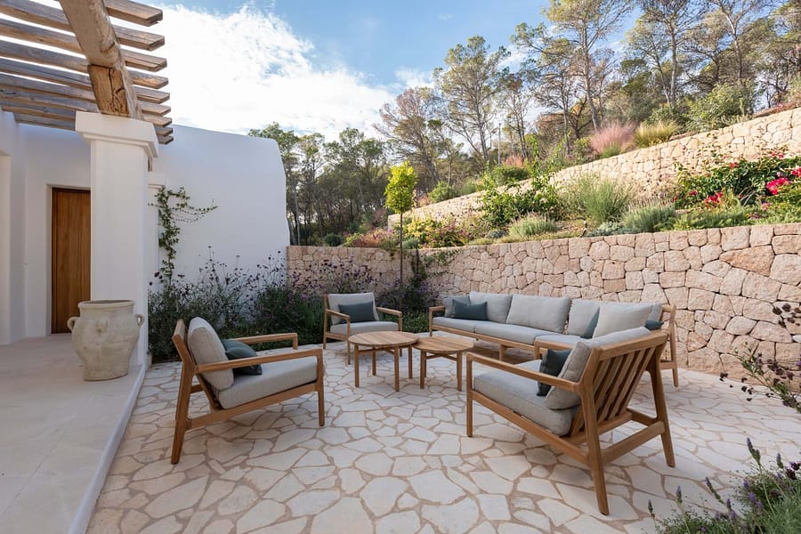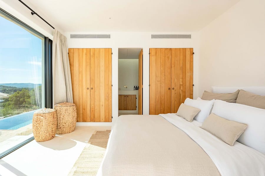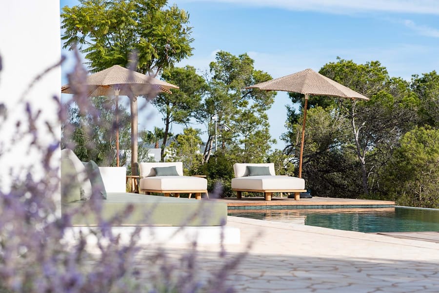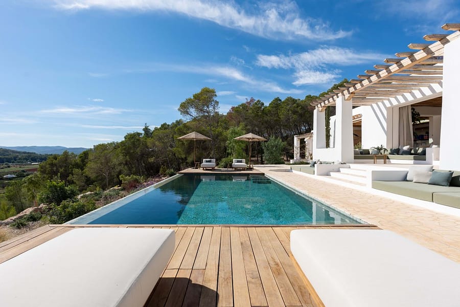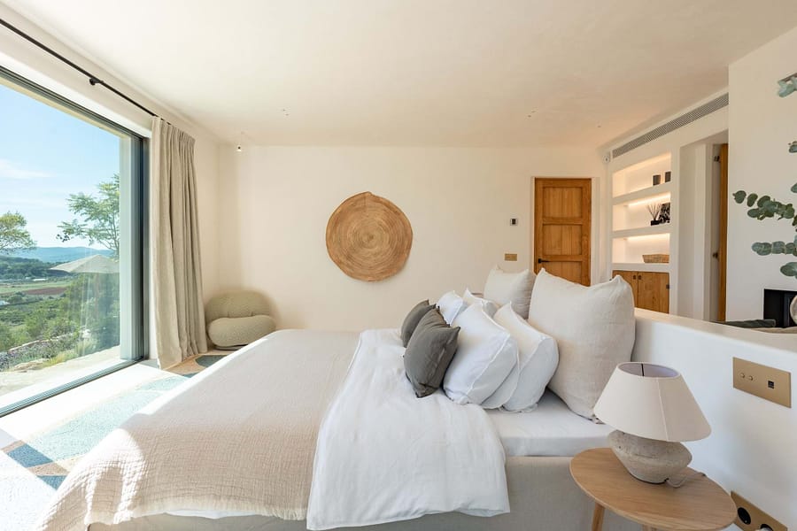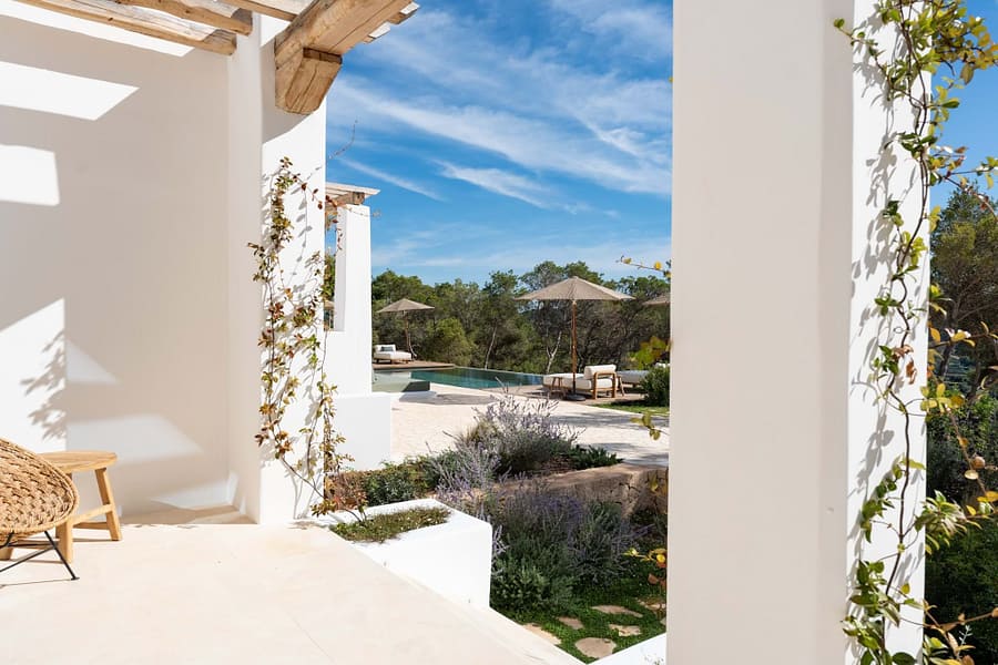 Outdoors, a 70m² pool is the centrepiece, with plenty of terrace space for sun, shade, and relaxed meals with friends and family. Though the setting feels wonderfully private, Santa Gertrudis and Ibiza Town are just minutes away.