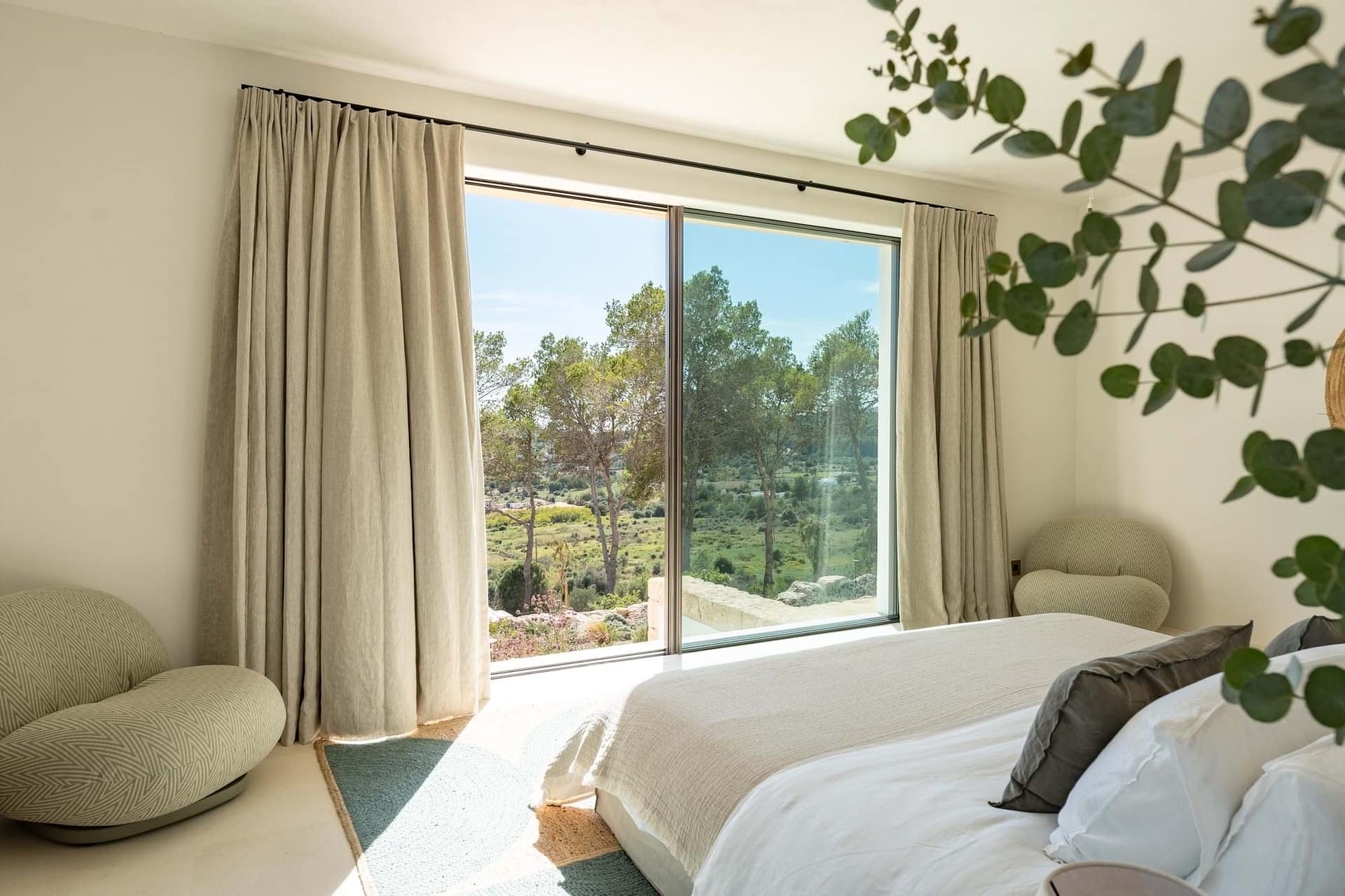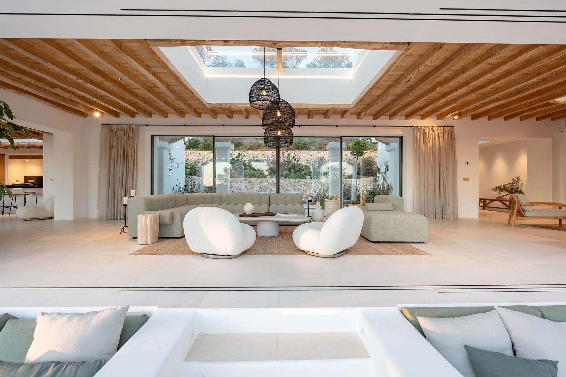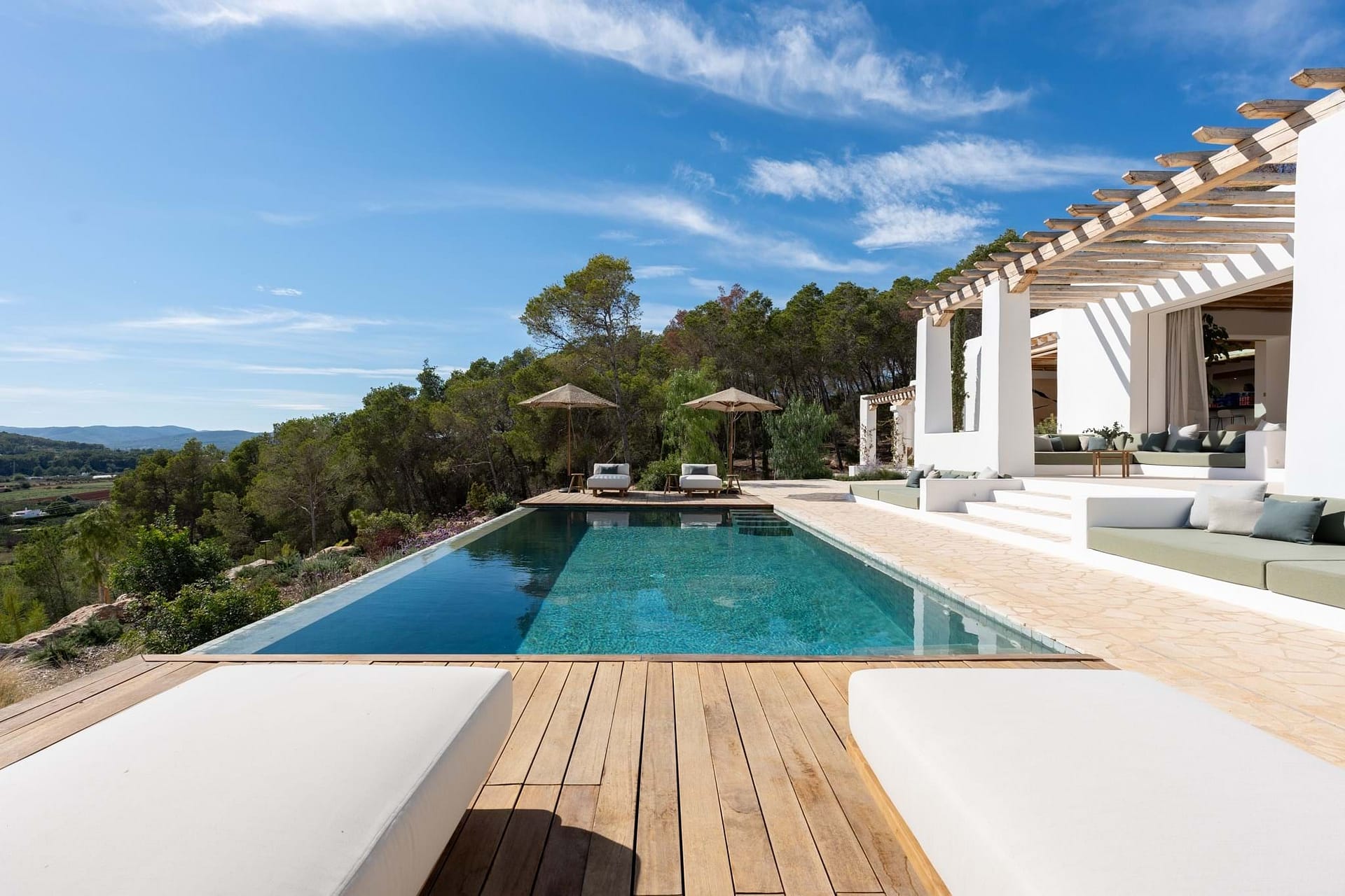 Outdoors, a 70m² pool is the centrepiece, with plenty of terrace space for sun, shade, and relaxed meals with friends and family. Though the setting feels wonderfully private, Santa Gertrudis and Ibiza Town are just minutes away.