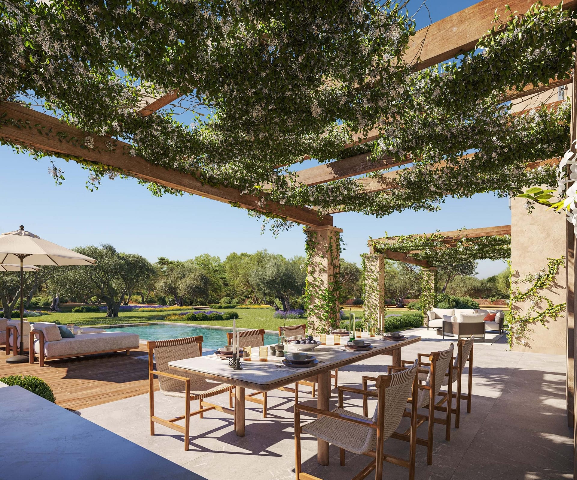 The fully equipped kitchen is a highlightappealing to passionate home cooks and lovers of thoughtful design alike. Casa Bunyola is a peaceful retreat for those seeking privacy, serenity, and sophisticated living in the heart of the Mallorcan countrysidejust a short drive from Palma.
