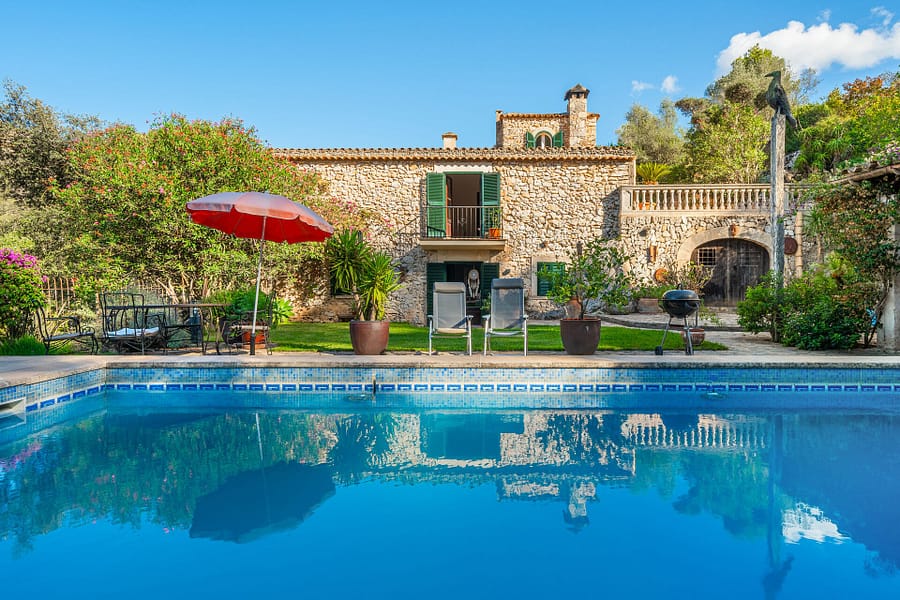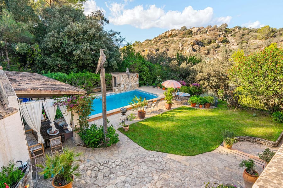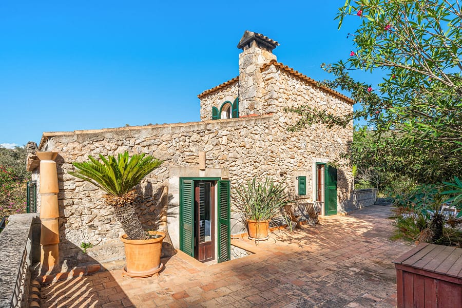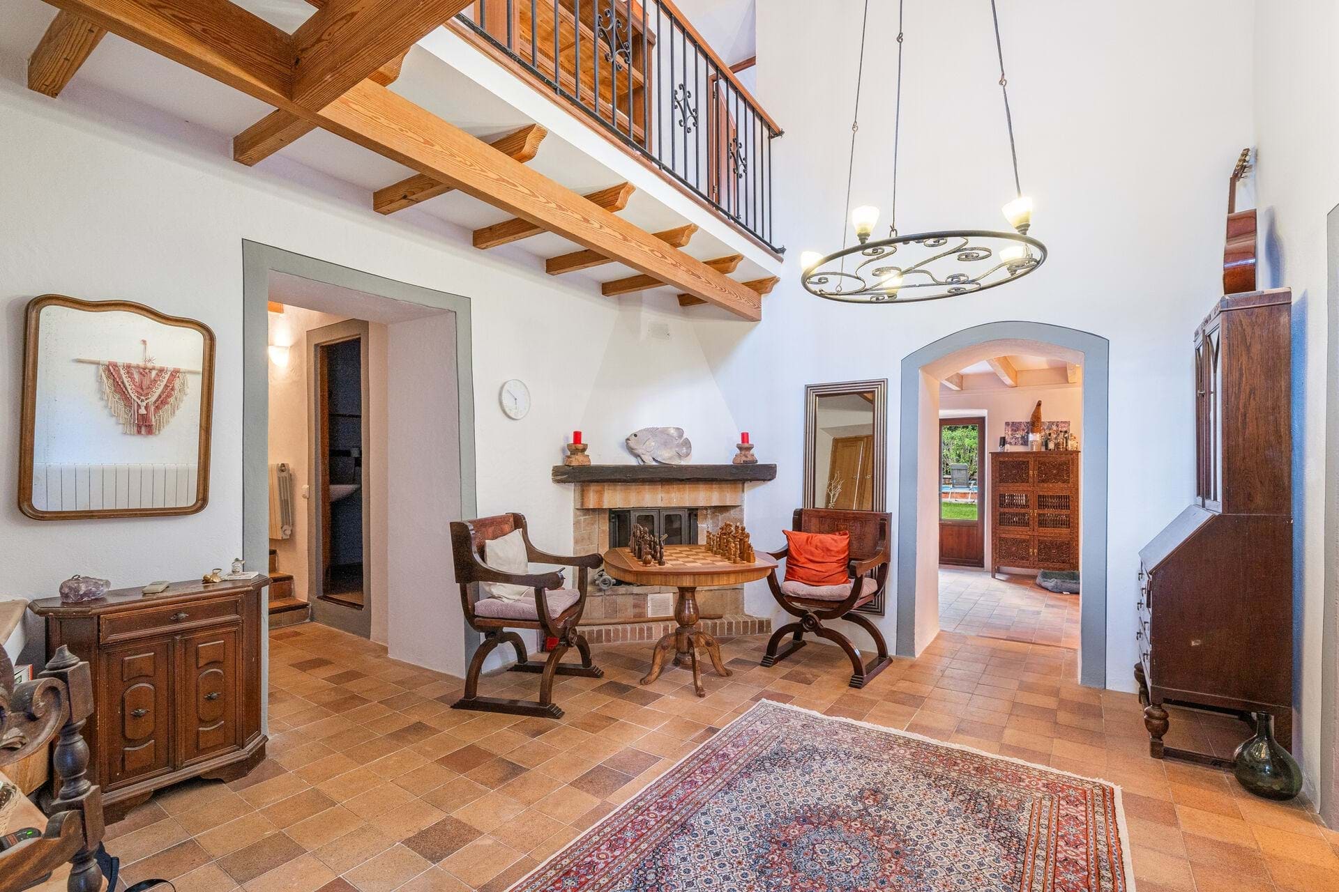 This enchanting country estate, nestled in a serene and private location on the outskirts of Santa Eugenia, offers a perfect blend of luxury and tranquility. Set on a sprawling 11,000m² plot with panoramic mountain views, this fully fenced property combines rustic charm with modern elegance. The estate features a well-designed living space that includes both a main house and a guest house, providing a total of 4 bedrooms and 4 bathrooms. This thoughtful layout ensures ample privacy and comfort for family living or entertaining guests. The exterior of the property is just as impressive, with expansive gardens adorned with mature fruit trees and multiple terraces, both open and covered, on various levels. These terraces offer ideal spots for dining al fresco, lounging, or simply soaking in the stunning views. The highlight of the outdoor area is the exquisite pool, complemented by a stylish pool house and an outdoor kitchenperfect for enjoying the Mediterranean climate. Additional features include a spacious garage for convenient parking and storage. With its harmonious blend of rustic elegance, modern conveniences, and breathtaking outdoor spaces, this estate offers an exceptional lifestyle of peace and luxury in one of Santa Eugenias most coveted locations.