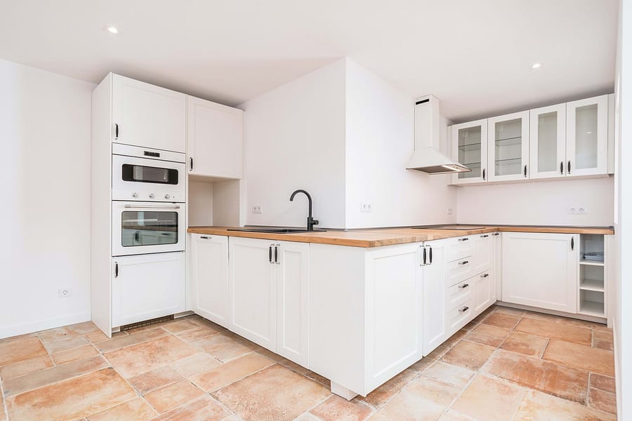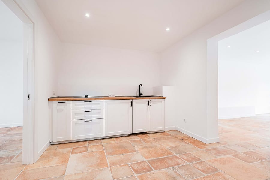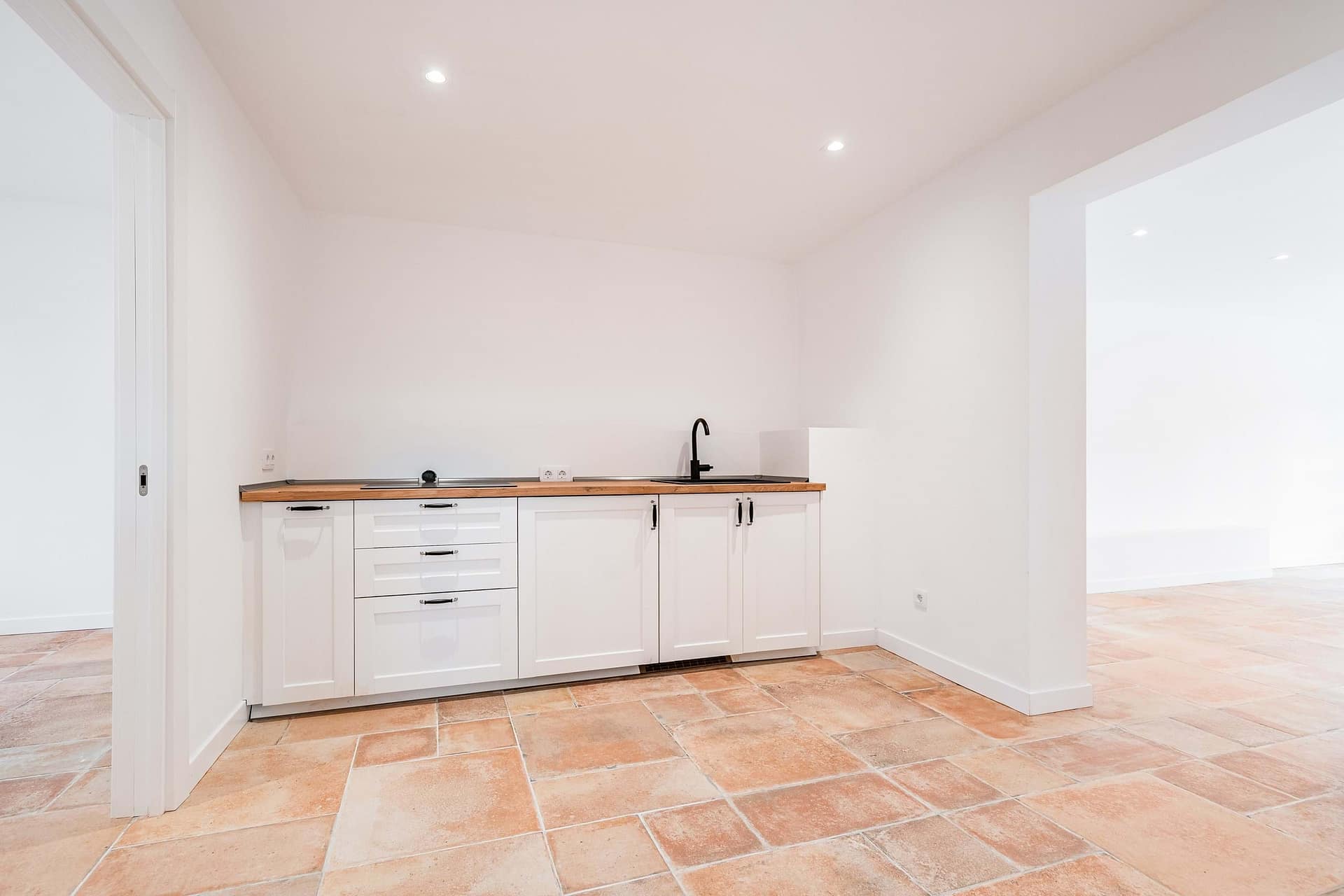 The house impresses with typical elements such as terracotta floors and exposed wooden beams, creating a warm, inviting atmosphere. A special highlight is the light-filled living area on the ground floor with a skylight and direct access to the large sun terrace. The adjoining kitchen is fully equipping. On the same floor, there are three bedrooms, two bathrooms, and a guest WC.
