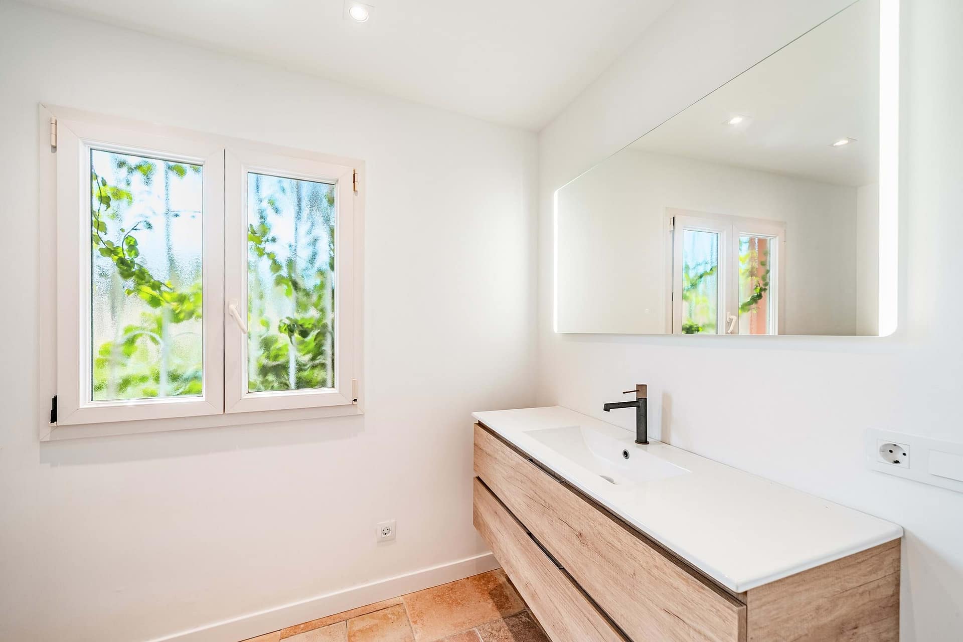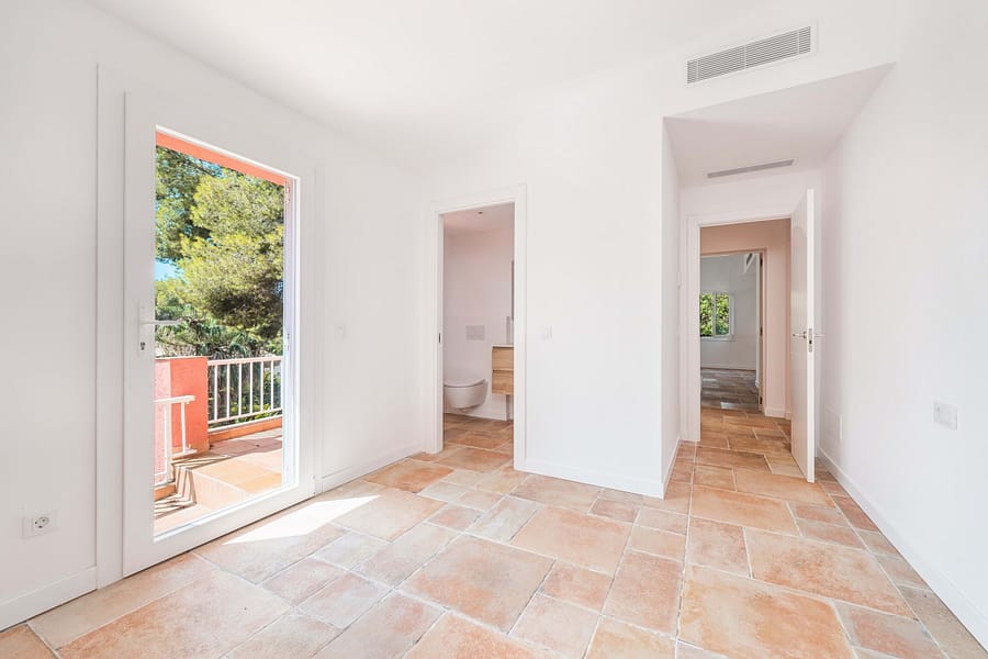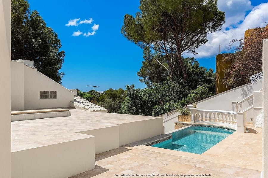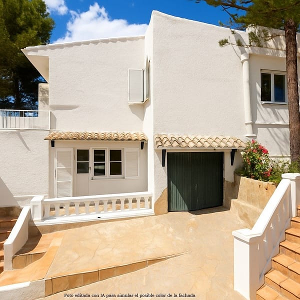 This detached villa with Mediterranean charm is located in a quiet area of Costa de la Calma, Calvià , just about 500 meters from the sea. The property offers around 270 m² of living space spread over three levels and features a total of five bedrooms, three bathrooms, and several spacious terraces with views of greenery.