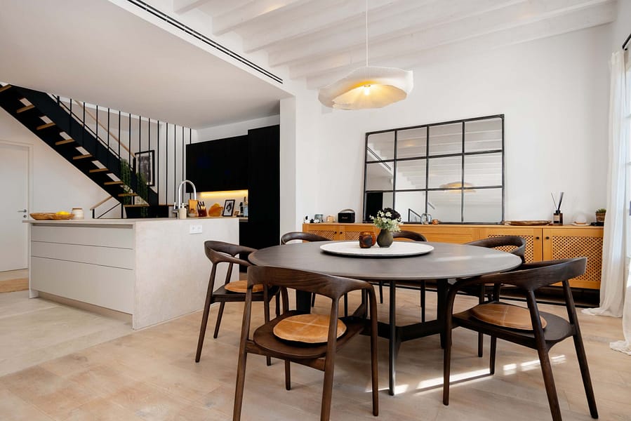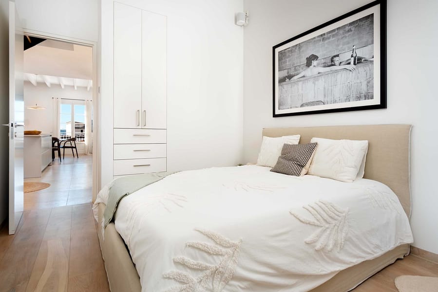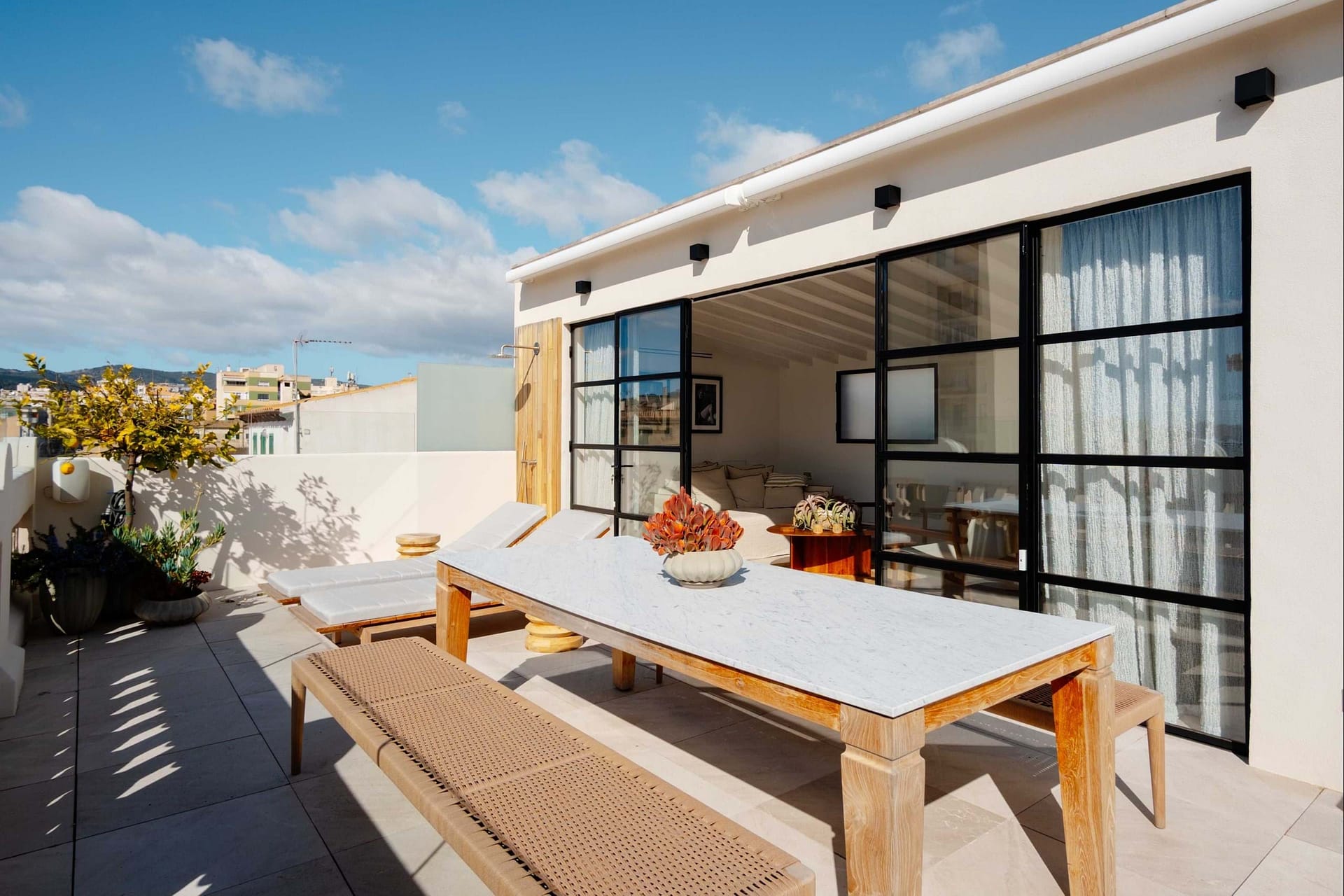 This exceptional duplex penthouse in the peaceful enclave of Santa Catalina represents a new pinnacle of urban living in Palma. Spanning 150 square meters of refined luxury, the residence opens with a sprawling main floor that seamlessly integrates the living and dining areas with a high-end, open-concept kitchen featuring premium Miele appliances. This level also hosts three sophisticated bedrooms, each paired with its own en suite bathroom, including a master suite complete with bespoke fitted wardrobes.
