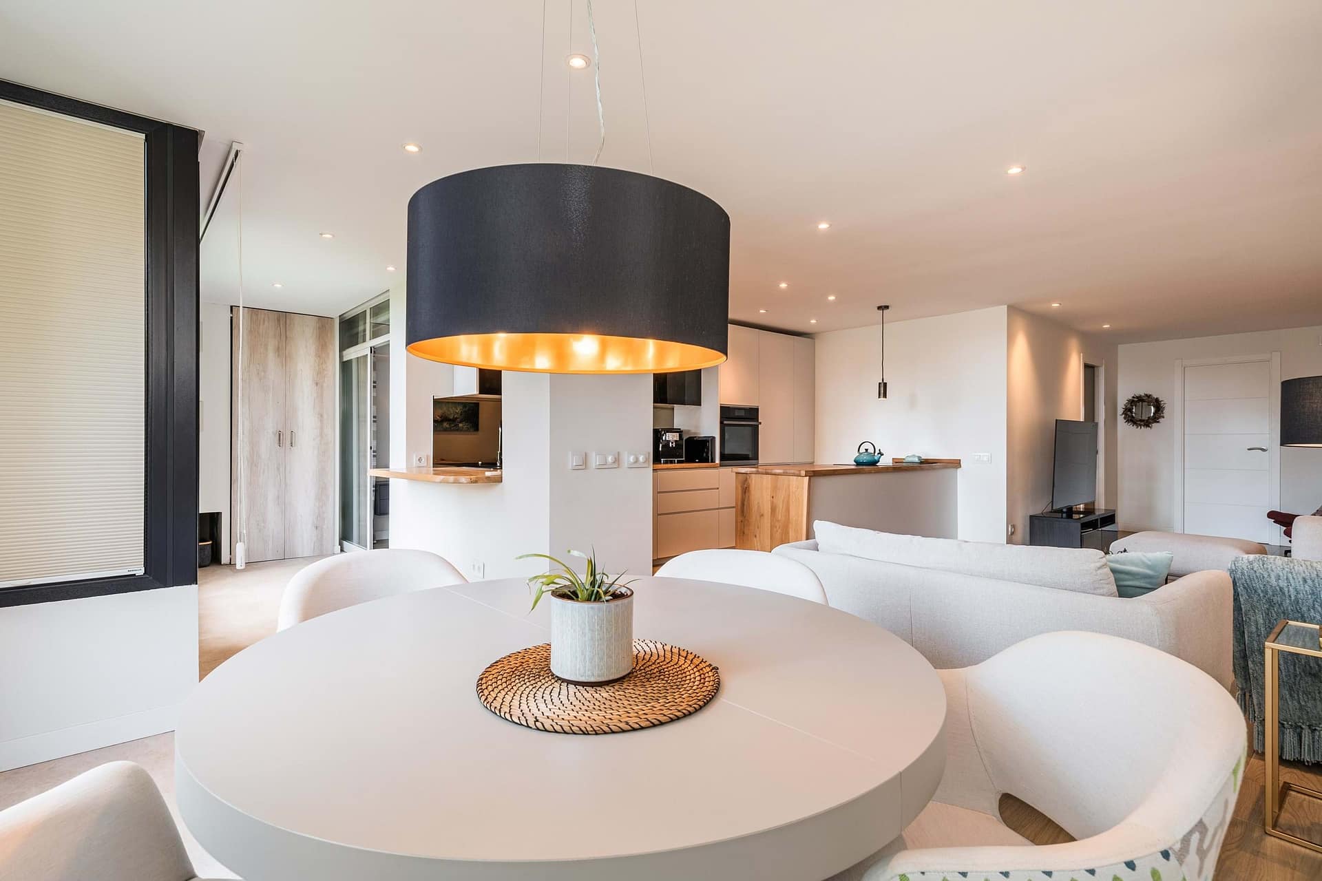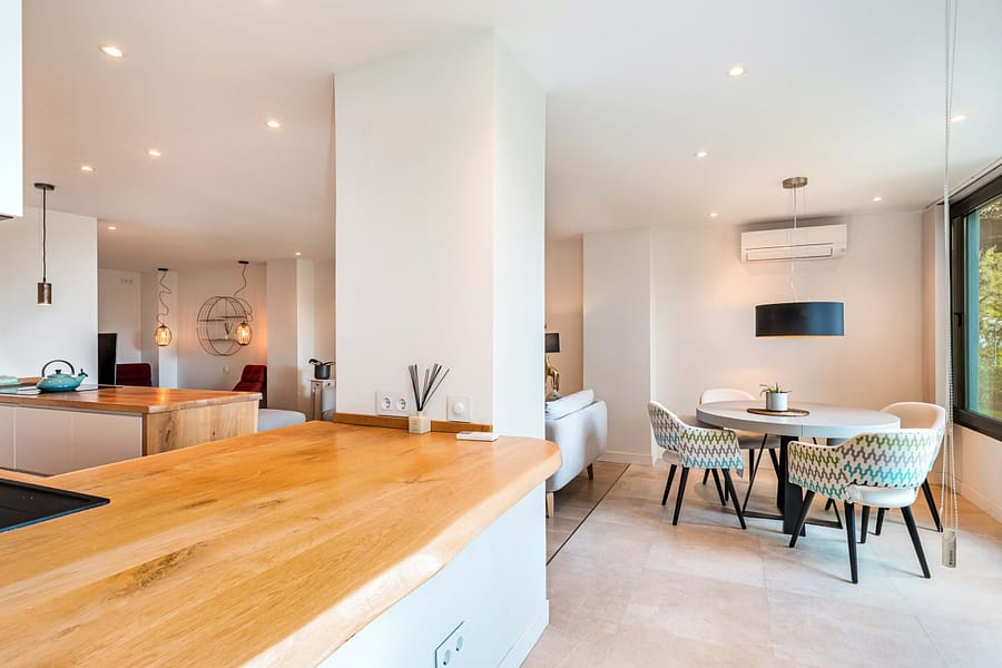 Completely renovated, the apartment offers 108 m² of bright, modern living space designed with clean lines, natural materials, and a sense of harmony throughout. It comprises three bedrooms the master suite with its own private bathroom. And two additional bedrooms sharing a stylish family bathroom. The open-plan living and dining area connects seamlessly to a fully equipped contemporary kitchen.