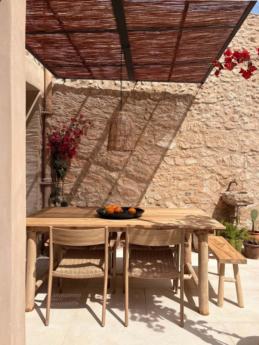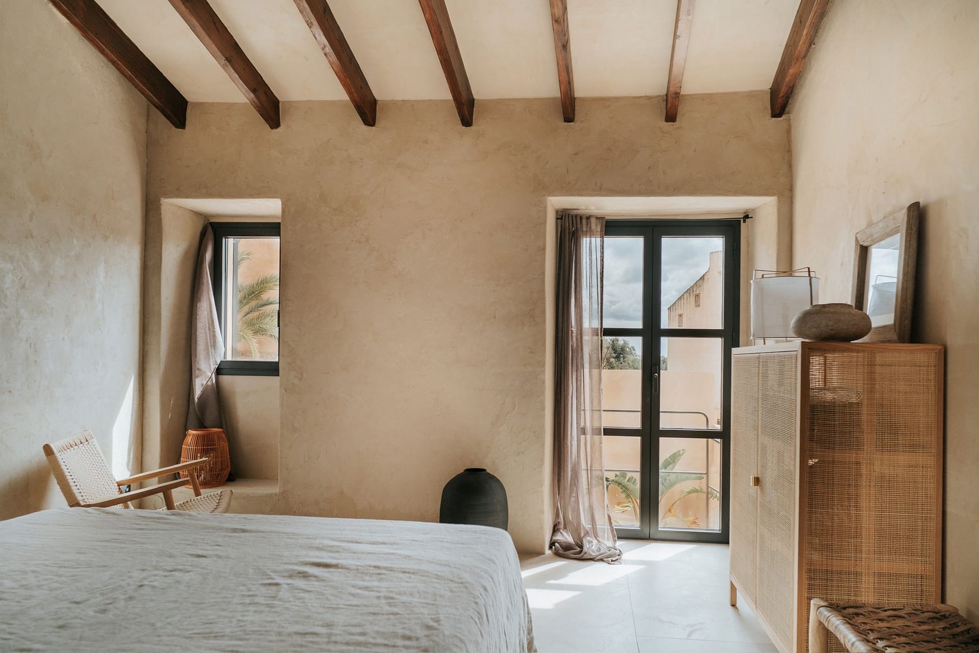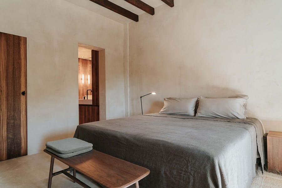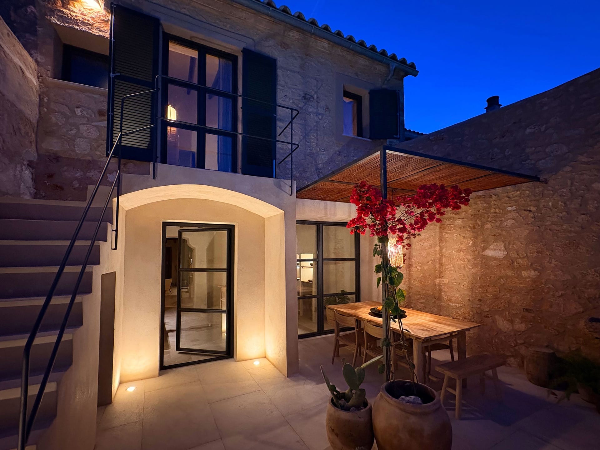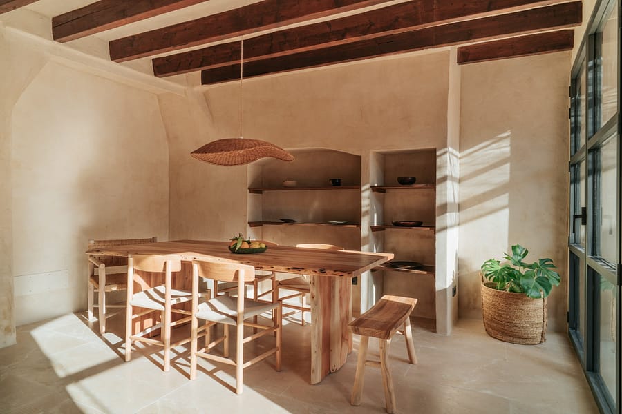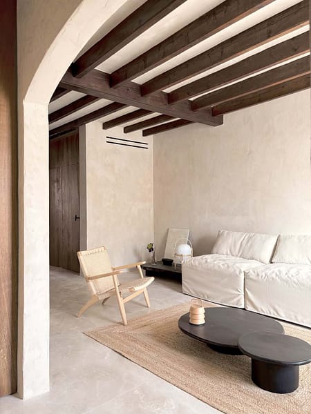Nestled in the heart of Es Llombards, this beautifully renovated townhouse for sale in a very quiet location in Santanyi combines modern comfort with traditional Mallorcan charm, making it ideal for long-term living or stress-free holiday stays. Completed in 2025 using premium natural materials, the home exudes warmth and character, with rich wood ceiling beams, natural stone floors, and textured finishes creating a soothing, earthy atmosphere.
