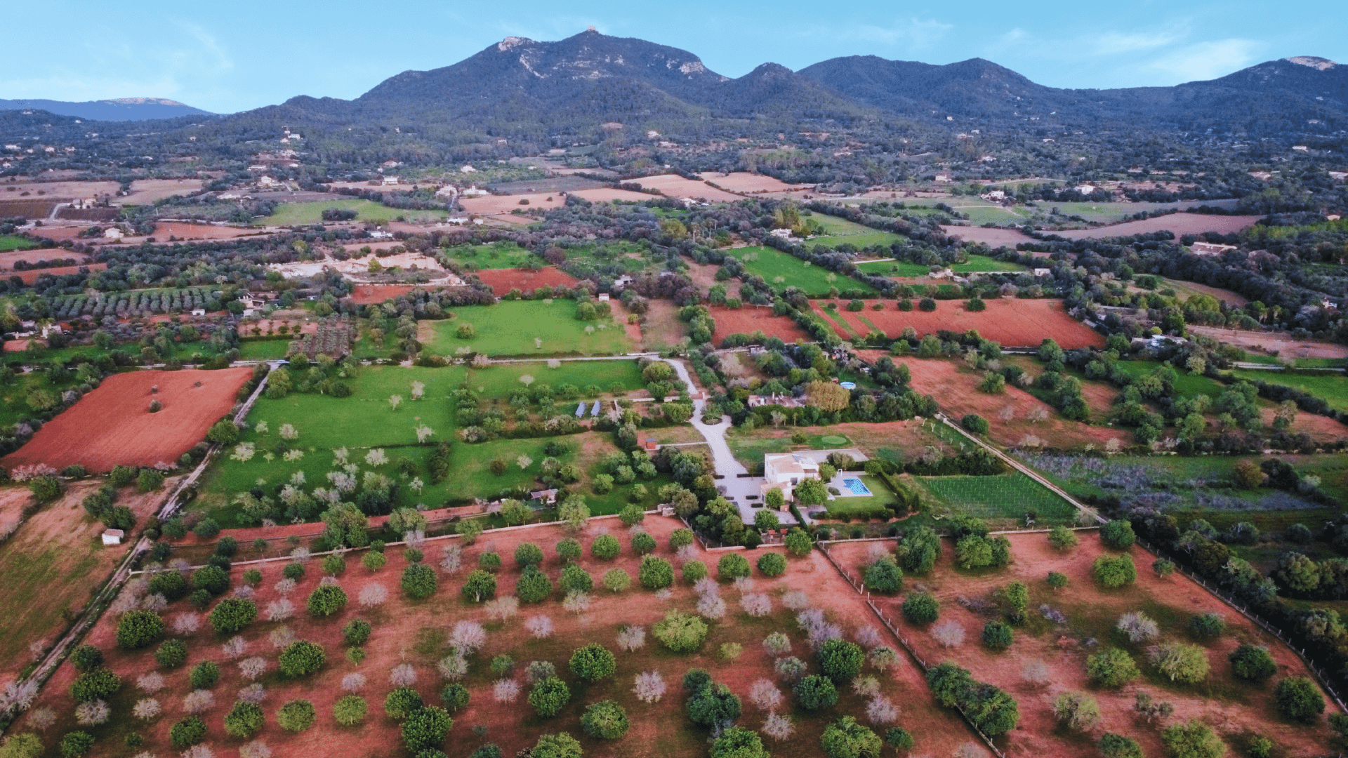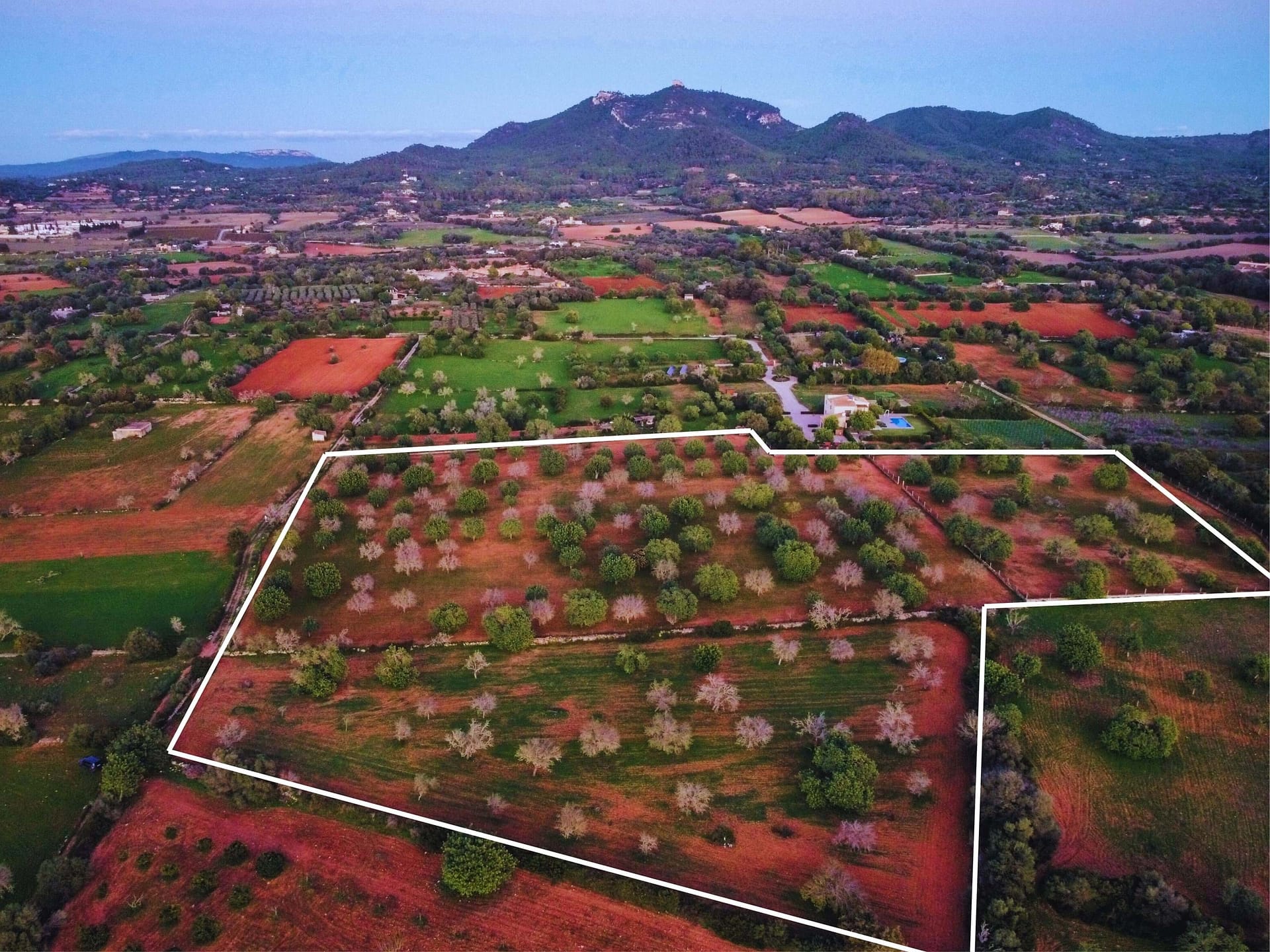 The land is ideal for a private finca with pool and landscaped gardens, expansive terraces with mountain and countryside views, and a Mediterranean-style garden framed by olive and almond trees.