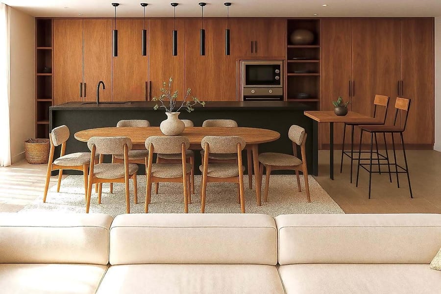 The outdoor living areas have been thoughtfully designed to embrace Mallorcas Mediterranean climate. Expansive covered and open terraces lead directly to a stunning 40 m² saltwater swimming pool surrounded by landscaped garden areas, creating a perfect setting for relaxation and entertaining.