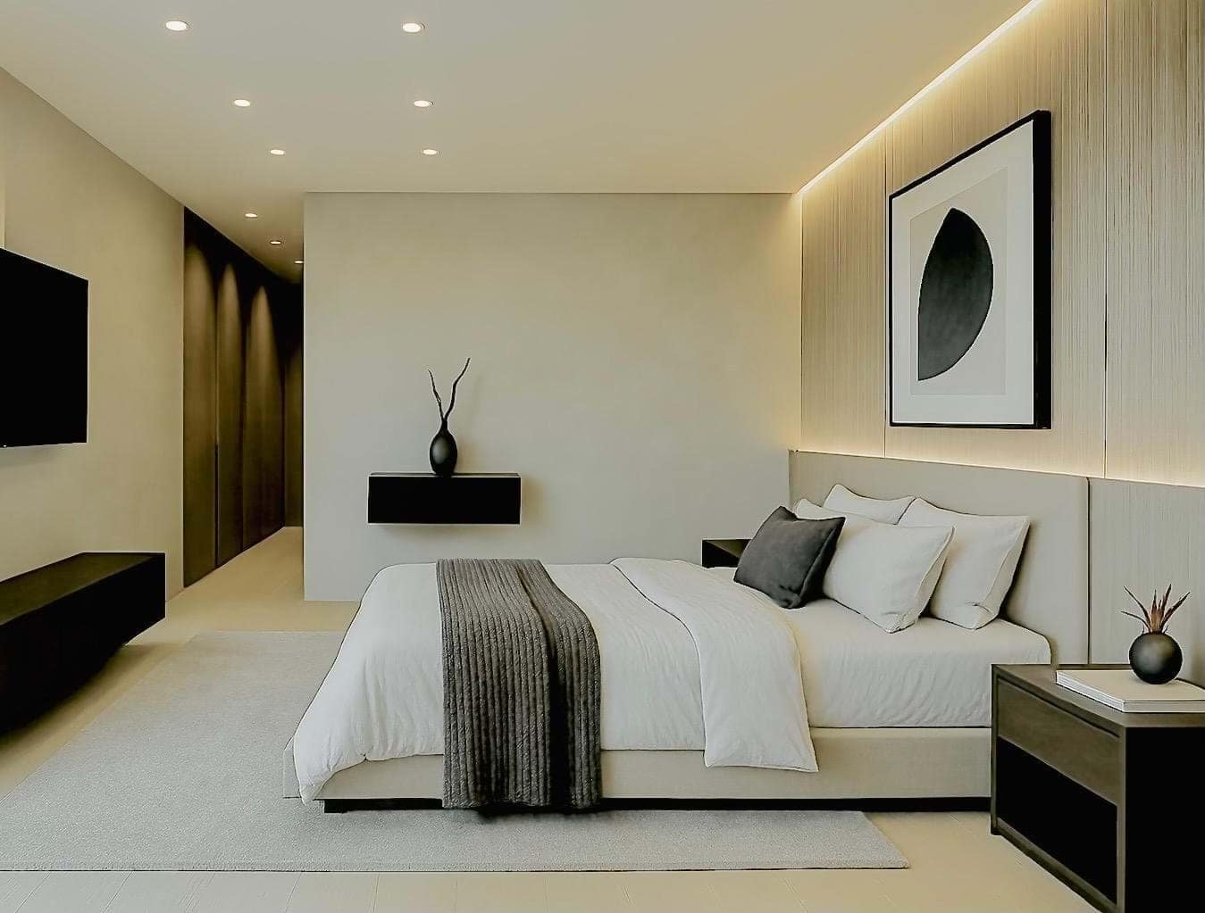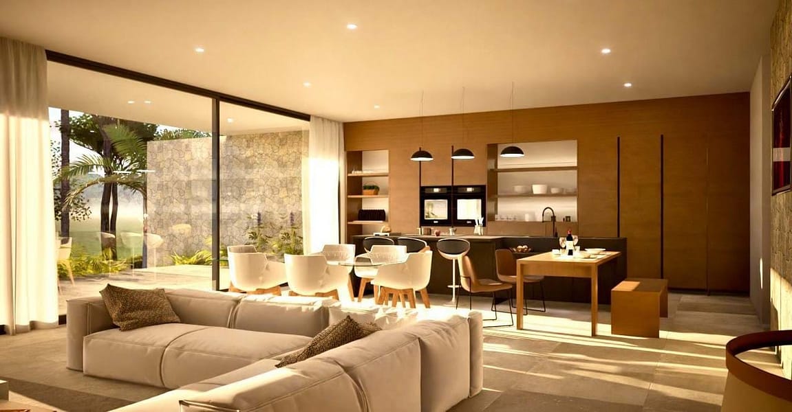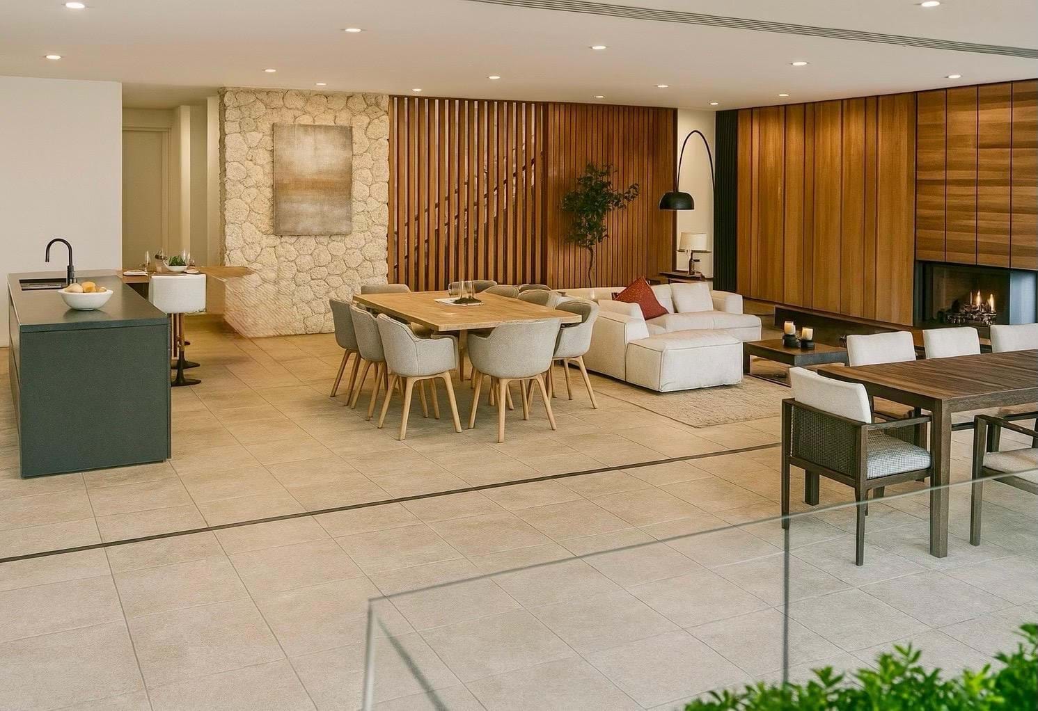 The villa will feature five generously sized en-suite bedrooms, each benefiting from its own private terrace and tranquil outlook. The main living level has been designed as a sophisticated open-plan space where contemporary design meets functional luxury. Floor-to-ceiling windows will flood the interiors with natural light while creating a seamless connection to the exterior terraces and garden areas.