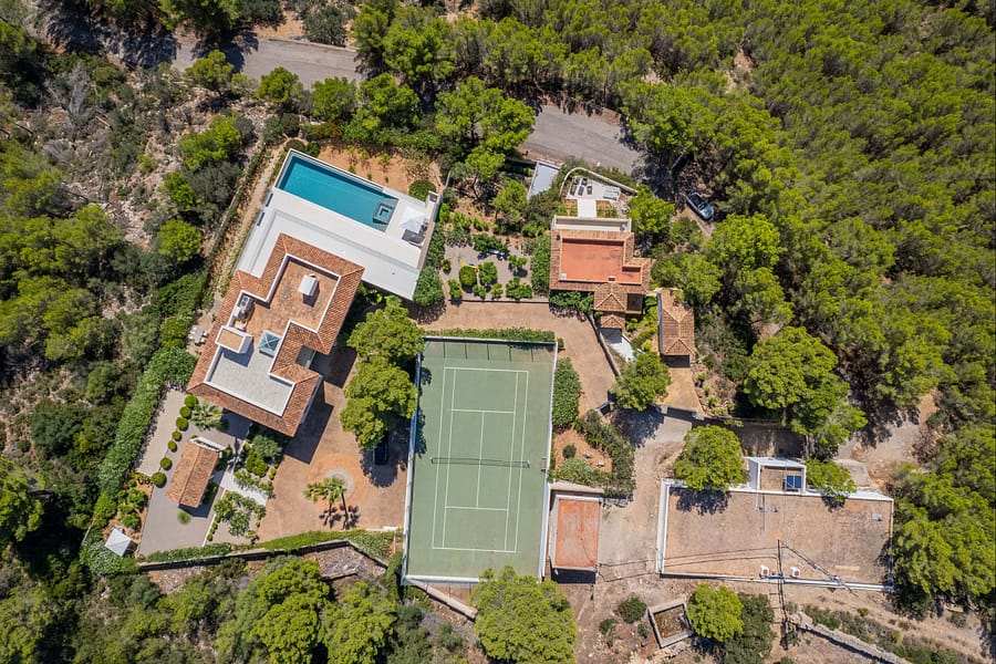 Adjacent to the villa is a separate three-bedroom guest house, ideal for hosting extended family or private staff. Two further guest rooms are discreetly located below the estates private 580 m² tennis court. Which is complemented by a double garage and ample parking for up to eight vehicles.