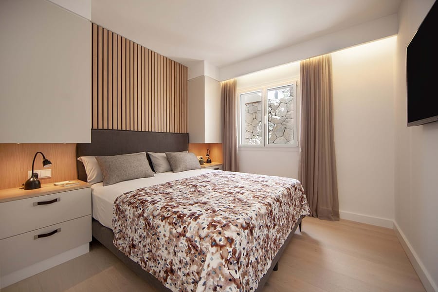 The open-plan living area includes a state-of-the-art kitchen with high-end appliances, a cosy gas fireplace and an elegant dining area. Four beautifully appointed bedrooms, each with its own en-suite bathroom, feature natural Mallorcan stone details and warm wooden flooring, providing privacy and luxury for family and guests. Completing the property are a private pool and high-quality designer outdoor furniturethe perfect setting for enjoying the Mediterranean lifestyle year-round.