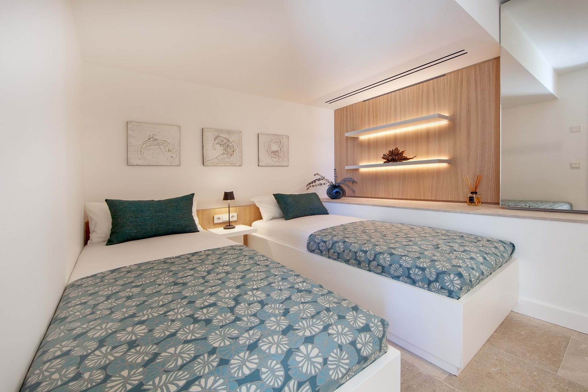 188 m² of total usable space (125 m² interior). The property comprises a guest apartment, two upper floors and partially covered terraces. That extend the living experience outdoors. High-quality materials and premium finishes are present throughout: underfloor heating, hot/cold air-conditioning and bespoke Austrian carpentry ensure outstanding comfort.