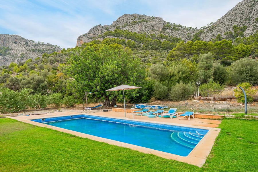 Nestled in the heart of Mallorcas picturesque Tramuntana region, this exclusive finca offers the perfect blend of modern luxury and traditional Mediterranean charm. Situated on a vast 15,000 m² plot, the property boasts a spacious 380 m² main house with 6 bedrooms and 5 bathrooms, including 2 en-suite rooms. The open-plan kitchen seamlessly connects to the living-dining area, creating an inviting space for family living or entertaining guests. High-end finishes such as parquet floors, fitted wardrobes, central heating, air conditioning, and double-glazed windows ensure year-round comfort. The estate includes a 40 m² guest house, providing privacy for visitors or additional living space. Outside, the property features a large swimming pool surrounded by a beautifully landscaped Mediterranean garden, all set against the breathtaking backdrop of the Tramuntana mountains. With a coveted vacation rental license, this property presents a lucrative investment opportunity, combining luxury living with the potential for substantial rental income. Ideally located just 15 minutes from Palma and 5 minutes from the center of Bunyola, this finca offers both tranquility and convenience, making it the perfect retreat in the Balearic Islands.