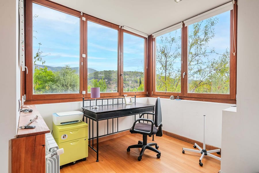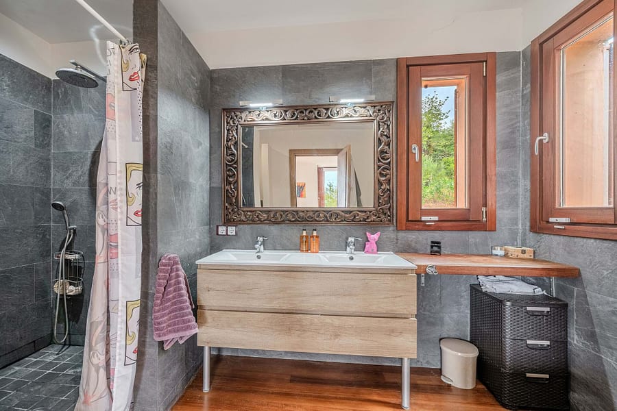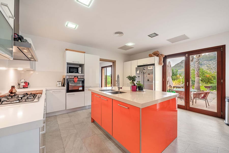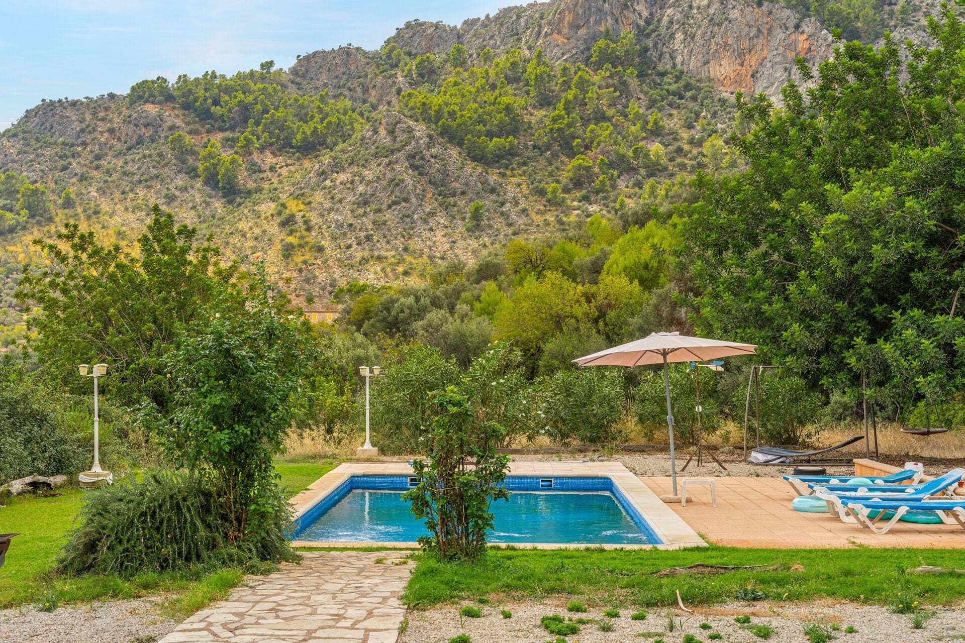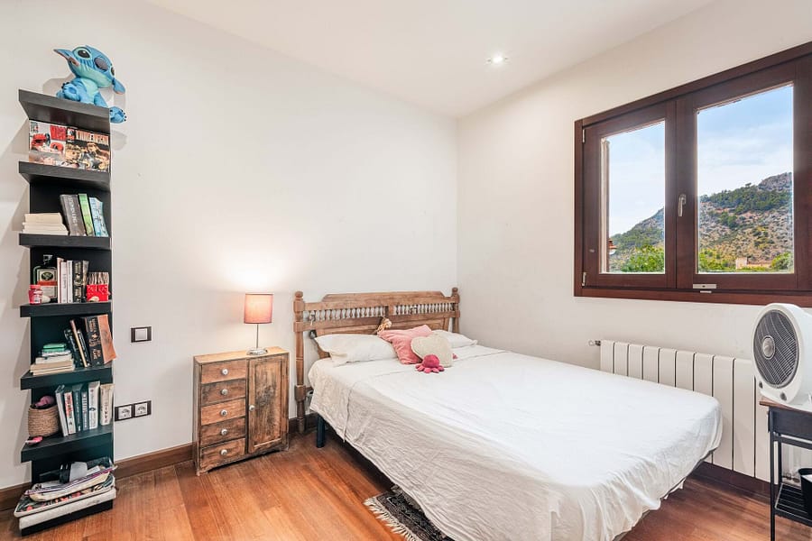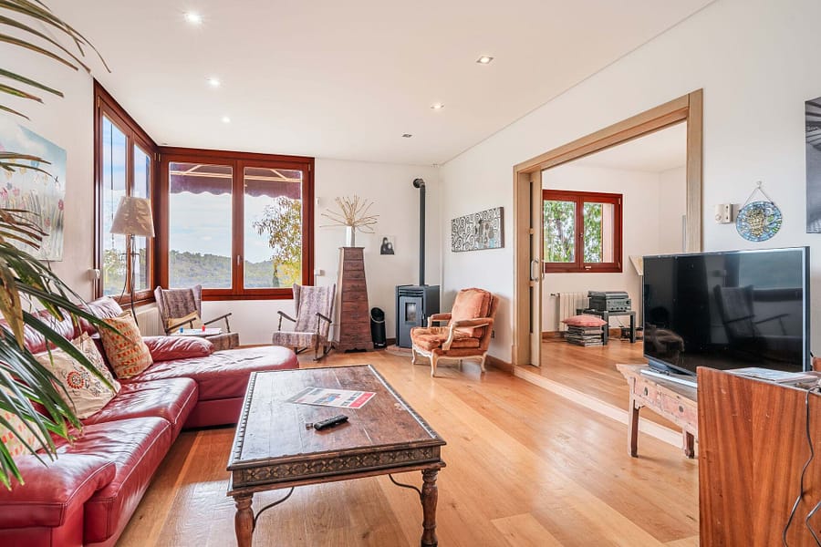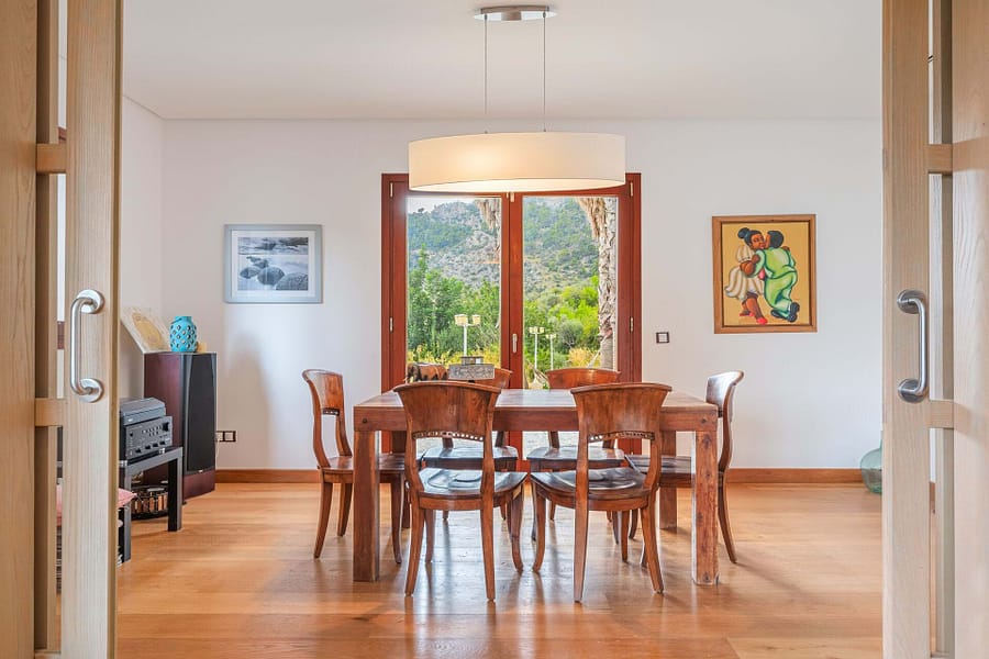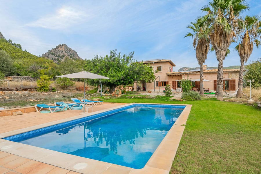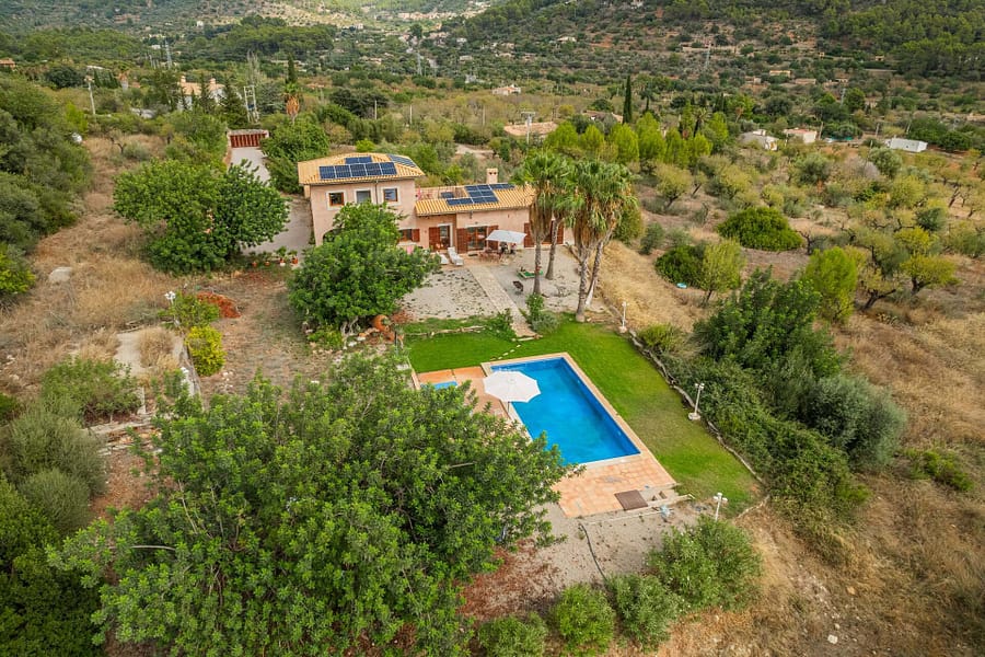 Nestled in the heart of Mallorcas picturesque Tramuntana region, this exclusive finca offers the perfect blend of modern luxury and traditional Mediterranean charm. Situated on a vast 15,000 m² plot, the property boasts a spacious 380 m² main house with 6 bedrooms and 5 bathrooms, including 2 en-suite rooms. The open-plan kitchen seamlessly connects to the living-dining area, creating an inviting space for family living or entertaining guests. High-end finishes such as parquet floors, fitted wardrobes, central heating, air conditioning, and double-glazed windows ensure year-round comfort. The estate includes a 40 m² guest house, providing privacy for visitors or additional living space. Outside, the property features a large swimming pool surrounded by a beautifully landscaped Mediterranean garden, all set against the breathtaking backdrop of the Tramuntana mountains. With a coveted vacation rental license, this property presents a lucrative investment opportunity, combining luxury living with the potential for substantial rental income. Ideally located just 15 minutes from Palma and 5 minutes from the center of Bunyola, this finca offers both tranquility and convenience, making it the perfect retreat in the Balearic Islands.