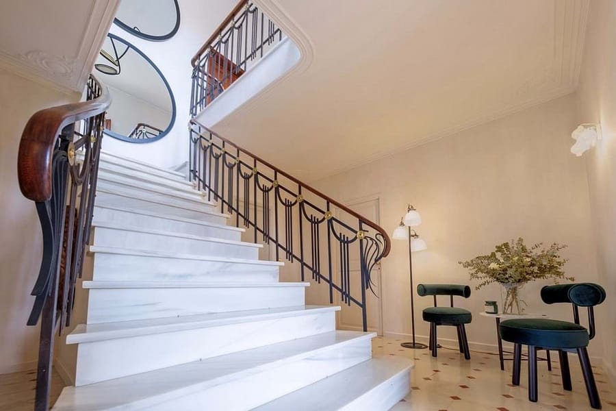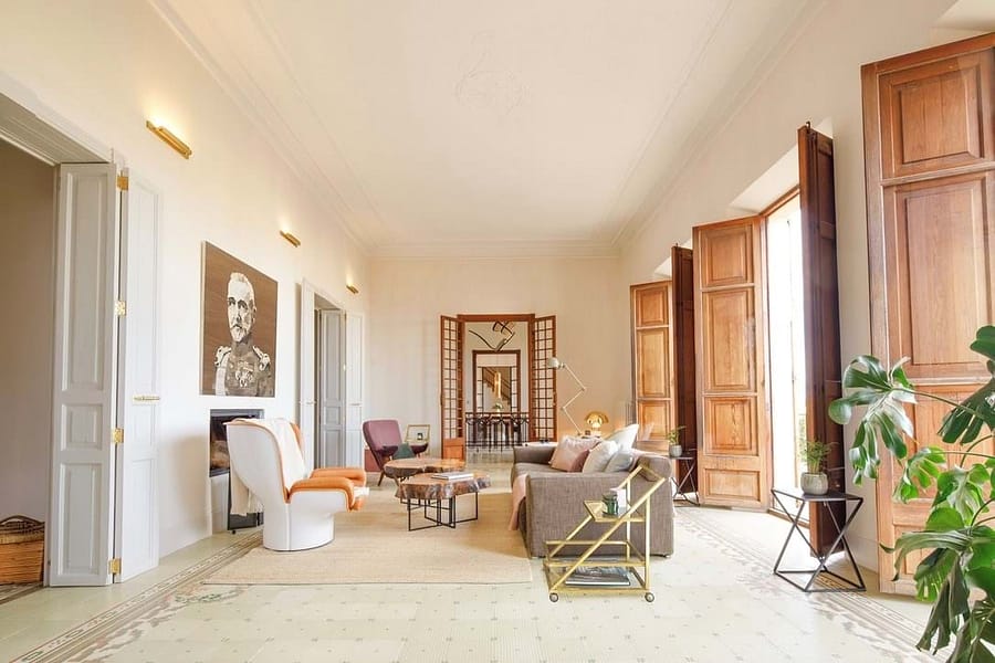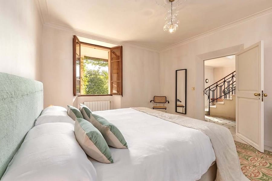 With 830 m² of living space on a 1,900 m² plot, the villa accommodates up to 16 guests across eight luxurious en-suite bedrooms. The master suite features a private terrace with panoramic views, while the villas striking balcony lends the façade a majestic presence and provides the perfect spot to take in the surrounding landscape. Bedrooms can be arranged with either double or twin beds, making the property ideal for families or groups. High ceilings, intricately patterned tile floors Rental, and elegant marble staircases preserve the historic charm, while modern updates ensure maximum comfort.