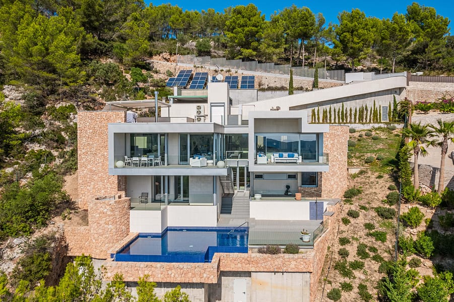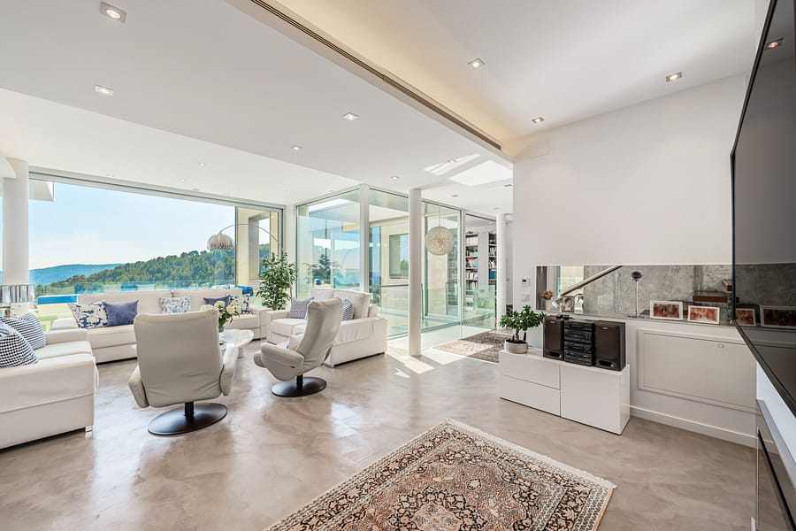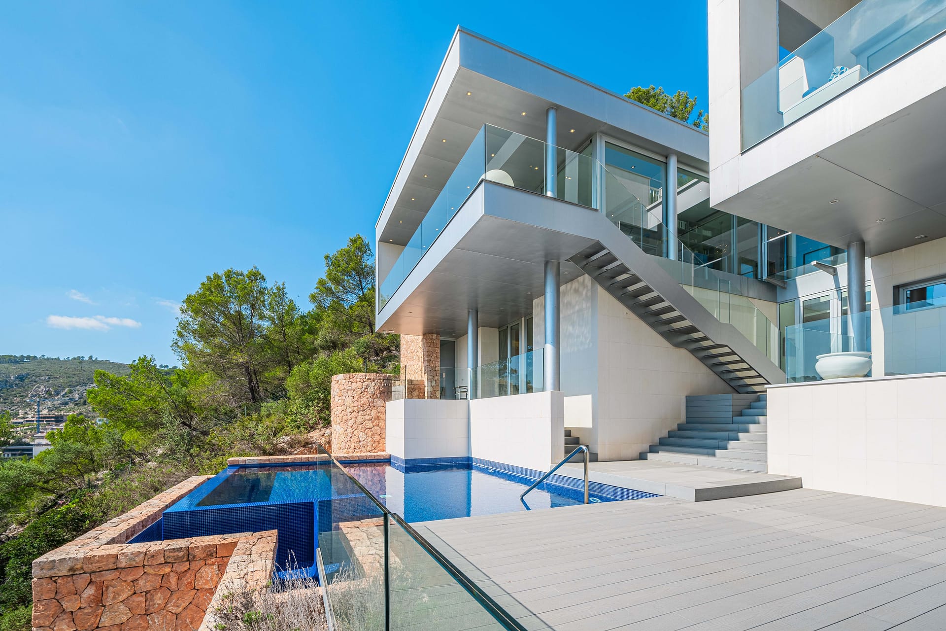 Welcome to an exclusive haven nestled within the breathtaking landscapes of Son Vida, known as the illustrious ‘Beverly Hills of Mallorca.’ Embrace the epitome of luxury living at our contemporary villa, perfectly poised on one of the most sought-after streets at the apex of Son Vida, boasting an unparalleled view of the stunning Bay of Palma and the glistening Mediterranean Sea. Enveloped in an aura of tranquility and seclusion, this resplendent modern villa stands as a testament to refined taste and opulence. With 5 exquisitely designed bedrooms and 5 meticulously crafted bathrooms, each space exudes an aura of sophistication and comfort. Meticulously maintained, the villa is presented in immaculate condition, showcasing a seamless fusion of modern elegance and timeless charm. Ascend effortlessly through the residence via the elevator, effortlessly connecting every floor and ensuring convenience and accessibility for all. The heart of the villa is adorned with a resplendent swimming pool, commanding a panoramic view of the verdant green zone and the azure Mediterranean horizon, creating a serene and picturesque atmosphere perfect for both relaxation and entertainment. Indulge in the allure of high-quality finishes, be enthralled by the soaring ceilings that bestow a sense of grandeur, and bask in the abundant natural light that gracefully floods every corner, creating an ambiance of warmth and tranquility. Whether you seek an exclusive retreat or a luxurious abode to call home, this property promises an unparalleled living experience, redefining the essence of upscale living in Son Vida’s prestigious neighbourhood. Discover the essence of indulgence and sophistication in this contemporary masterpiece, where luxury meets comfort and exclusivity meets serenity. This is more than just a home; it’s an unparalleled lifestyle awaiting your presence.
