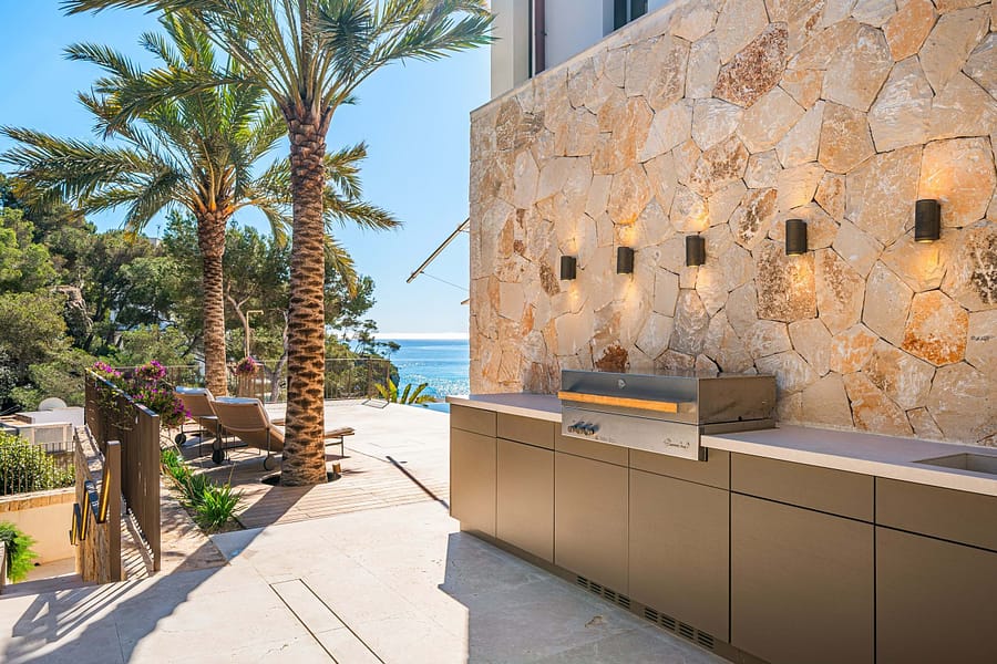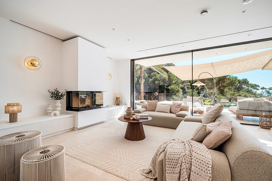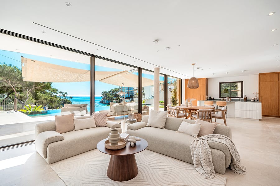This elegant new villa on the seafront combines modern architecture, the highest quality construction. And a unique location with direct access to the fine sandy beach of Cala Santanyí. Its privileged position offers a fantastic view of the sea, while the well thought out architecture creates a harmonious interplay between indoor and outdoor areas.