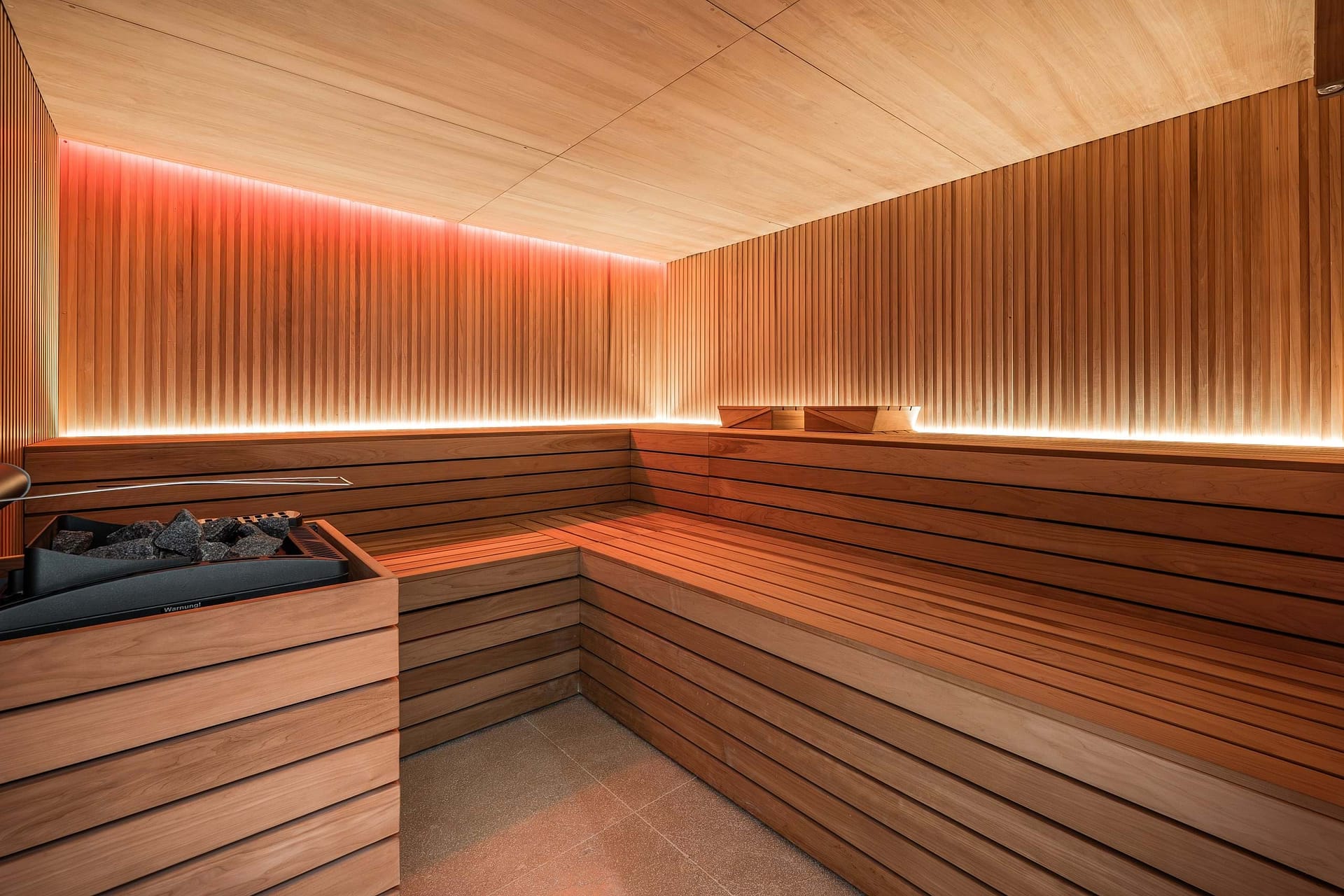 Luxurious materials and state of the art building services characterize the entire property. High quality natural stone floors, custom made real wood fixtures, an integrated sound system. And comfortable underfloor heating ensure an exclusive living environment and the highest level of comfort. Generous window fronts allow plenty of light into the rooms and create flowing transitions between the living area and the spacious terraces.