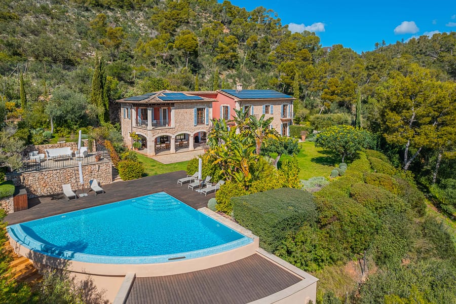 Nestled on a gentle slope above Palma, within the lush embrace of the Tramuntana Nature Park, lies a hidden gem that seamlessly blends traditional charm with the pinnacle of modern luxury. Our lovingly renovated finca is a true sanctuary of privacy and sophistication, offering 520 m of elegant living space on a vast 30,000 m estate. With five ensuite bedrooms, a state-of-the-art saltwater pool, and an enchanting garden peppered with olive trees, this property promises breathtaking views and a life of unparalleled comfort. Designed for self-sufficiency with a nod to eco-luxury, it features solar power, battery storage, and even an emergency generator, ensuring peace of mind alongside opulent living. Whether it’s cozying up by the fireplace in the living room, enjoying a vintage from the wine fridge in the dining room, or embracing the tranquility on your private yoga terrace, this finca is more than a homeit’s a lifestyle statement for those who seek the perfect blend of attitude, sophistication, purpose, and passion in the heart of Mallorca’s natural beauty. Extra: Rental license.