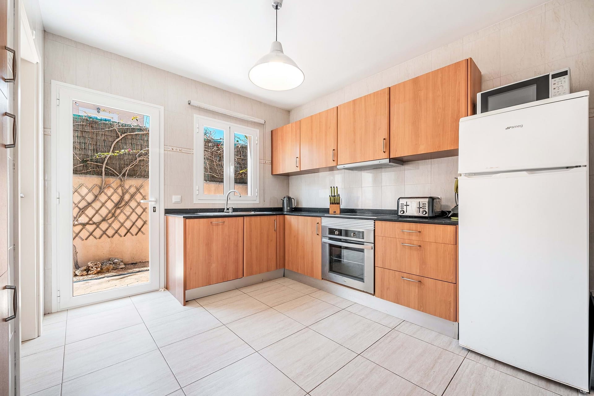 The spacious, light-filled living area is designed for entertaining and relaxation, flowing effortlessly to the outdoor terrace and poolideal for summer dining, barbecues, and long days in the sun. An outdoor shower enhances the poolside experience, while the generous kitchen connects both to the living space and directly to the wraparound garden. A full bathroom with shower on the ground floor adds convenience for guests, making the home as functional as it is inviting.