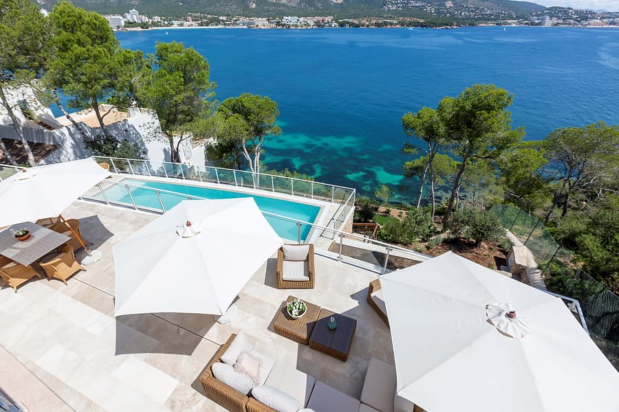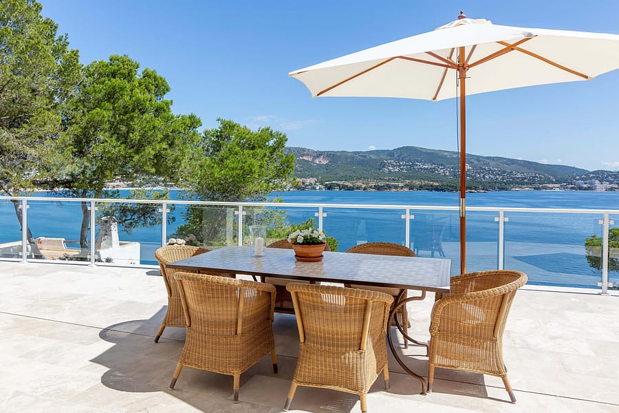 Welcome to your Mediterranean paradise, a stunning property nestled front line to the sea in the enchanting Cala Vinyas. This exquisite residence offers the perfect blend of coastal luxury and tranquility, making it an ideal haven for those seeking the ultimate Mediterranean lifestyle. Situated just steps away from the local white sand beaches with their crystalline turquoise waters, this property beckons you to indulge in the endless pleasures of coastal living. Imagine waking up to the soothing sounds of the waves and taking leisurely strolls along the pristine shoreline whenever you desire. One of the standout features of this remarkable property is its breathtaking panoramic views. From here, you can feast your eyes on the spectacular vistas across the Bay of Palma and the vast Mediterranean Sea. Whether it’s sunrise or sunset, every moment spent gazing at this picturesque scenery is a reminder of the sheer beauty of this location. Step inside, and you’ll be greeted by a spacious and open interior that seamlessly connects with the stunning outdoor spaces. High ceilings create an airy and inviting atmosphere, while an abundance of natural light floods every corner of the home, accentuating its beauty. The property boasts large interior and exterior spaces, perfect for both relaxation and entertainment. You’ll find ample room for hosting gatherings with family and friends or simply unwinding in your own private oasis. Whether it’s a sun-soaked terrace, a tranquil garden, or a refreshing pool, the outdoor areas are designed to enhance your Mediterranean experience. Privacy is paramount in this Mediterranean retreat, ensuring that you can fully immerse yourself in the serenity of your surroundings. Whether you’re enjoying a lazy afternoon by the pool, savouring a meal on the terrace, or escaping to your cozy indoor sanctuary, you’ll relish the tranquility that this property affords. In this Mediterranean haven, you’ll discover the essence of coastal luxury living. Embrace the idyllic Cala Vinyas lifestyle, where white sand beaches meet turquoise waters, and where every day is a celebration of the beauty of the Mediterranean. Welcome home.
