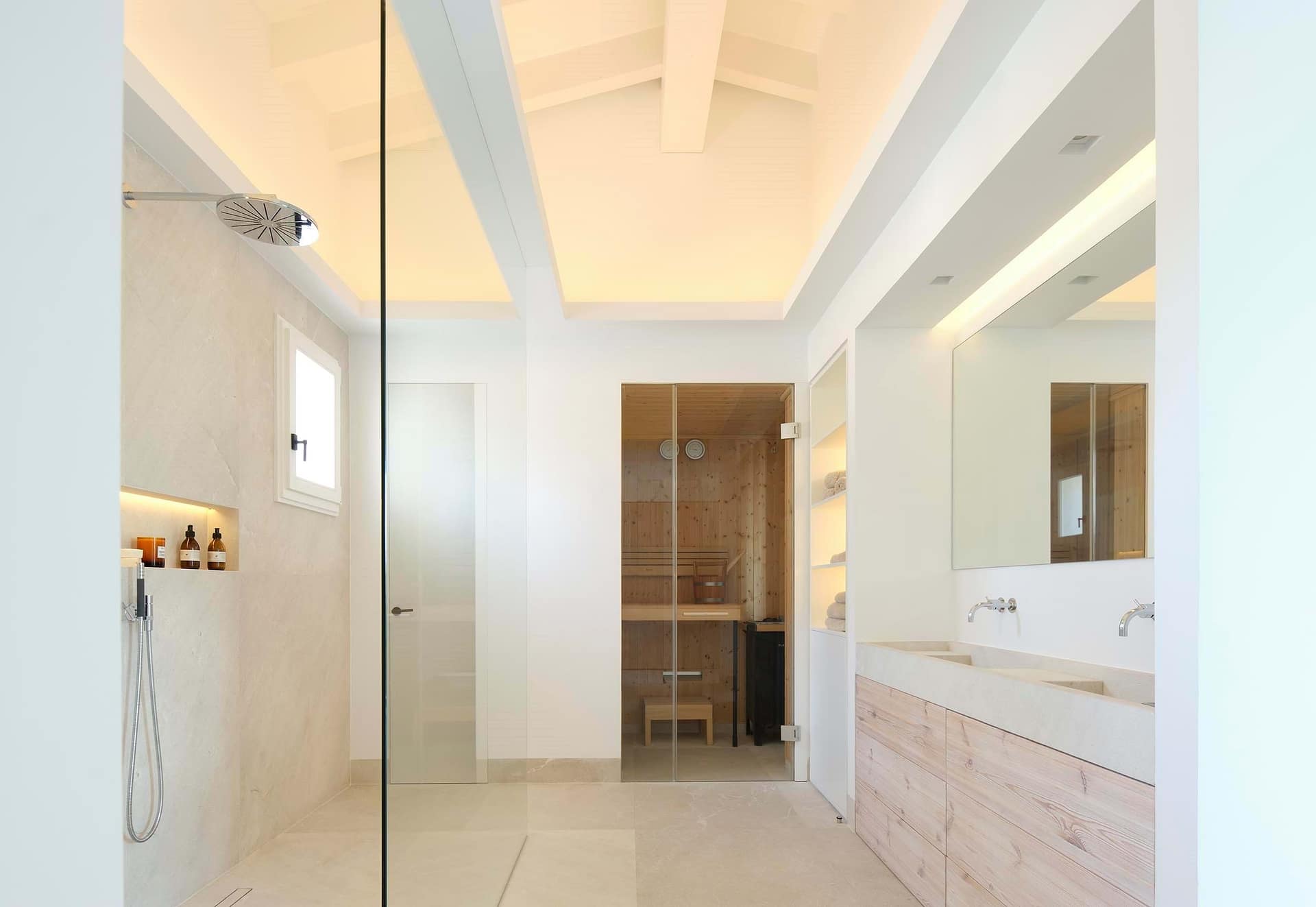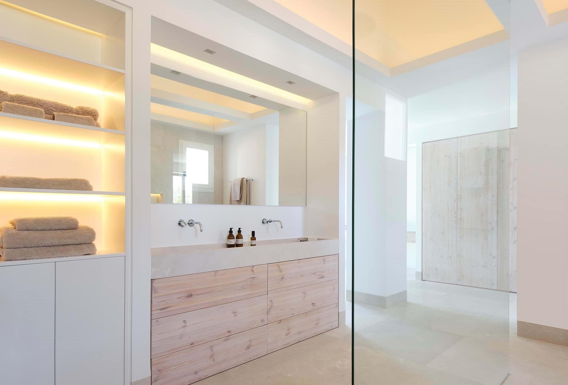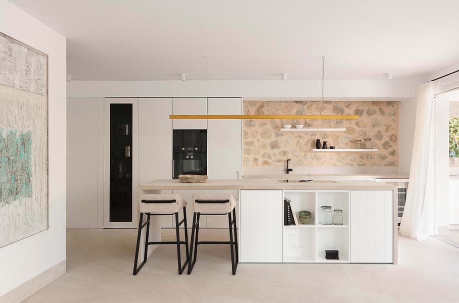With approximately 286 m² of interior living space. The residence unfolds into an open, light-filled layout that exudes harmony and sophistication. Clean architectural lines are balanced with natural textures and warm Mediterranean tones. While expansive windows capture the surrounding landscape and bathe each room in natural light. The result is a home that truly reflects the essence of indoor out door living in Mallorca, creating a seamless flow between the interior spaces and the sun-soaked terraces.