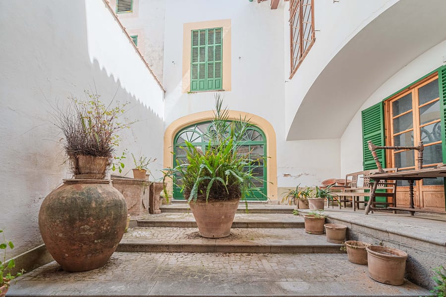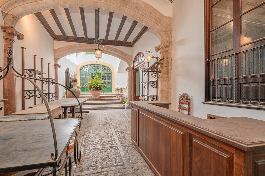 The ideal place to learn about the ways and lifestyles of the wealthy sollerics before the 20th century are the posadas, the residences that the large agricultural landowners of the Sierra de Tramuntana owned in the village. In addition to a place to live and store the fruits of their lands, the posadas were a symbol of power and opulence that signaled the social status of the owner. The Can Prohom was built around 1758. Curiously, in 1860, Queen Isabella II stayed in this majestic manor house accompanied by the future King Alfons XII. The city palace in the heart of Soller, is a stunning architectural gem that is ripe for restoration and renovation. Nestled in the heart of the town, it offers breathtaking views of the majestic mountains that surround the area. The palace boasts a wealth of original features, including high ceilings, intricate woodwork, and ornate stonework, all of which lend it an air of grandeur and sophistication. With its spacious rooms the palace is perfect for a range of uses, from a private residence to a commercial space, such as a hotel. The potential for the palace is virtually limitless, with plenty of room for creative reimagining and refurbishment. The addition of modern amenities, such as air conditioning, modern plumbing and wiring, and updated appliances, could transform the space into a luxurious retreat that is perfect for entertaining guests or simply relaxing in comfort. Outside, the palace is surrounded by lush gardens and courtyards, providing ample space for outdoor entertaining and activities. With the addition of a pool, the palace could become a true oasis in the heart of the city. Overall, the city palace in Soller is an exceptional property with a wealth of potential. With a careful and thoughtful restoration, it could become one of the most sought-after properties on the island, offering an unparalleled blend of historical charm and modern luxury.