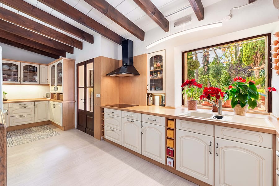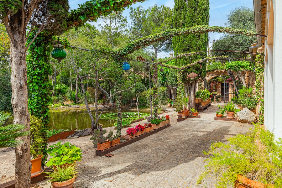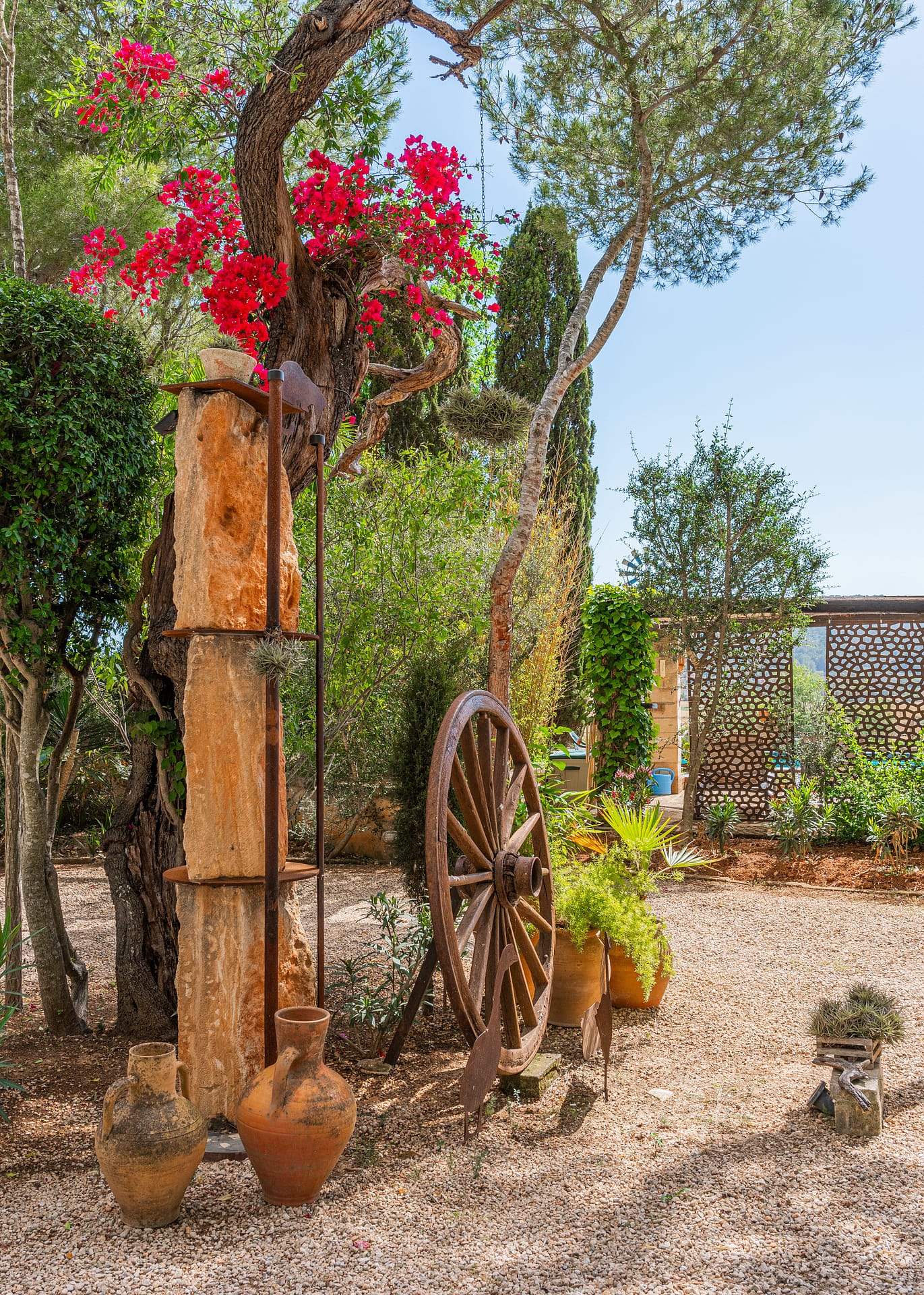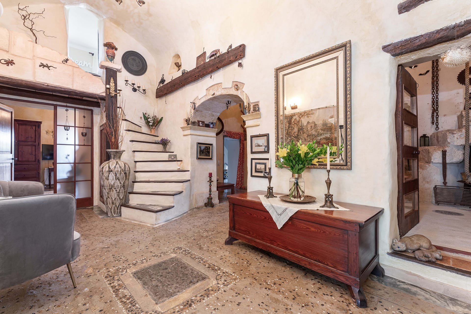 This meticulously restored, authentic windmill serves as a private oasis and secure investment, preserving a luxurious and highly private home alongside a piece of Mallorcan history and tradition. Situated in the heart of the island, this beautiful property seamlessly blends into a charming village with excellent connectivity. For more than three decades, the same dedicated family has owned this remarkable estate, fostering a deep connection to its unique character. Initially captivated by its charm, they embarked on a careful restoration, breathing new life into the ruins while preserving their magical essence. Their commitment has not only maintained the timeless beauty of the house but also enhanced its warmth and character, making it a unique home. The property consists of a main house and a separate guest house. The main house features rooms with high ceilings and a combination of traditional and modern elements. The centerpiece is the walkable mill tower with its original stone staircase, exceptionally well-preserved and stately. The completely independent guest house, equipped with a valid vacation rental license, offers comfortable living spaces and modern amenities. This secluded oasis boasts a professionally landscaped garden that has evolved into a true Garden of Eden over the past 30 years. Surrounding the property are tranquil water features and beautifully designed seating areas, perfect for year-round enjoyment. When the sun sets, the garden is illuminated, creating a mesmerizing ambiance. Additional features include various modern amenities and extensive property documentation. This property not only offers a luxurious lifestyle but also a rare opportunity to own a piece of Mallorcan heritage. Extras: Own well