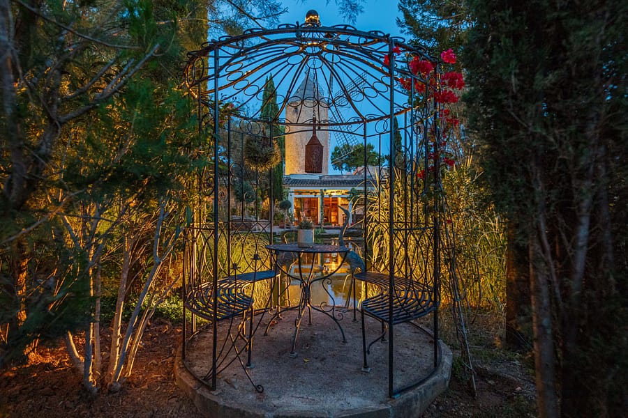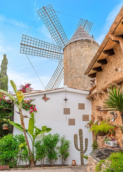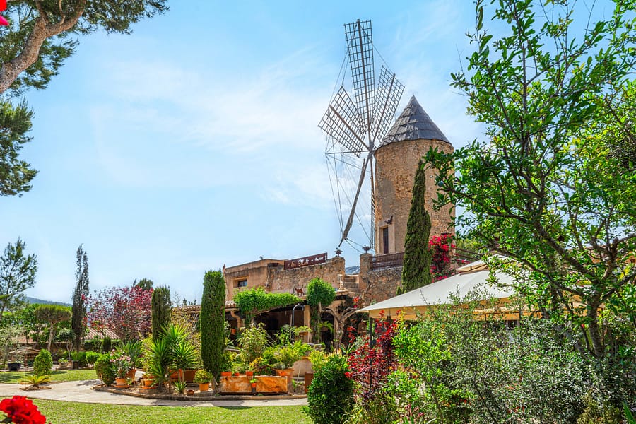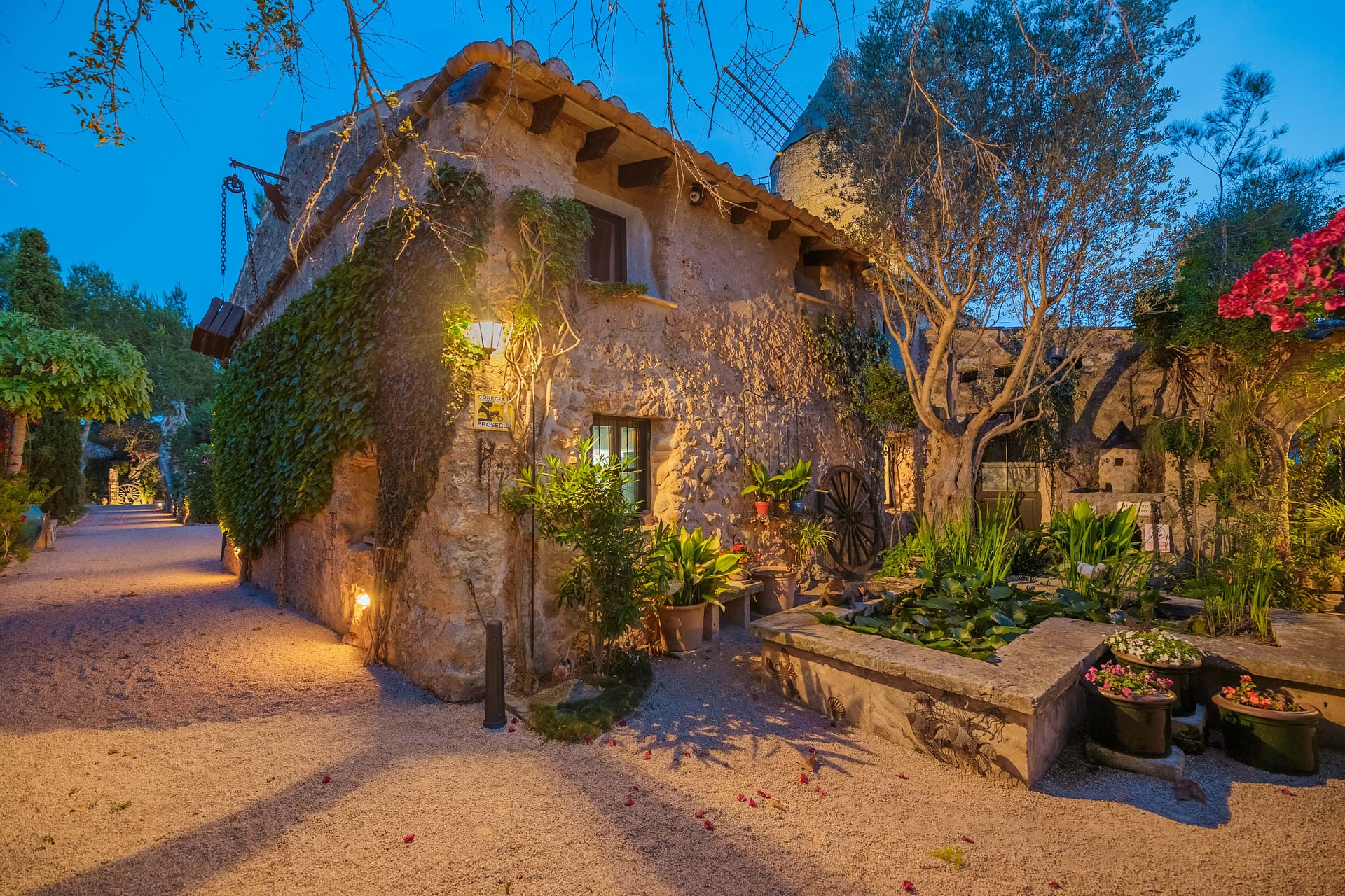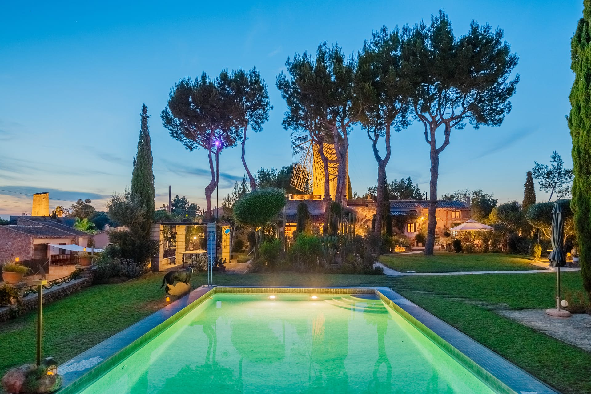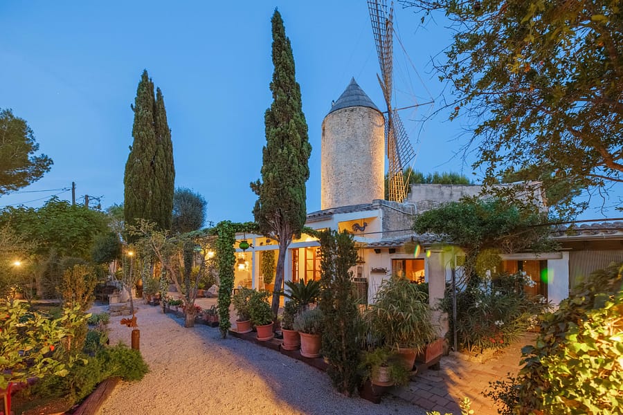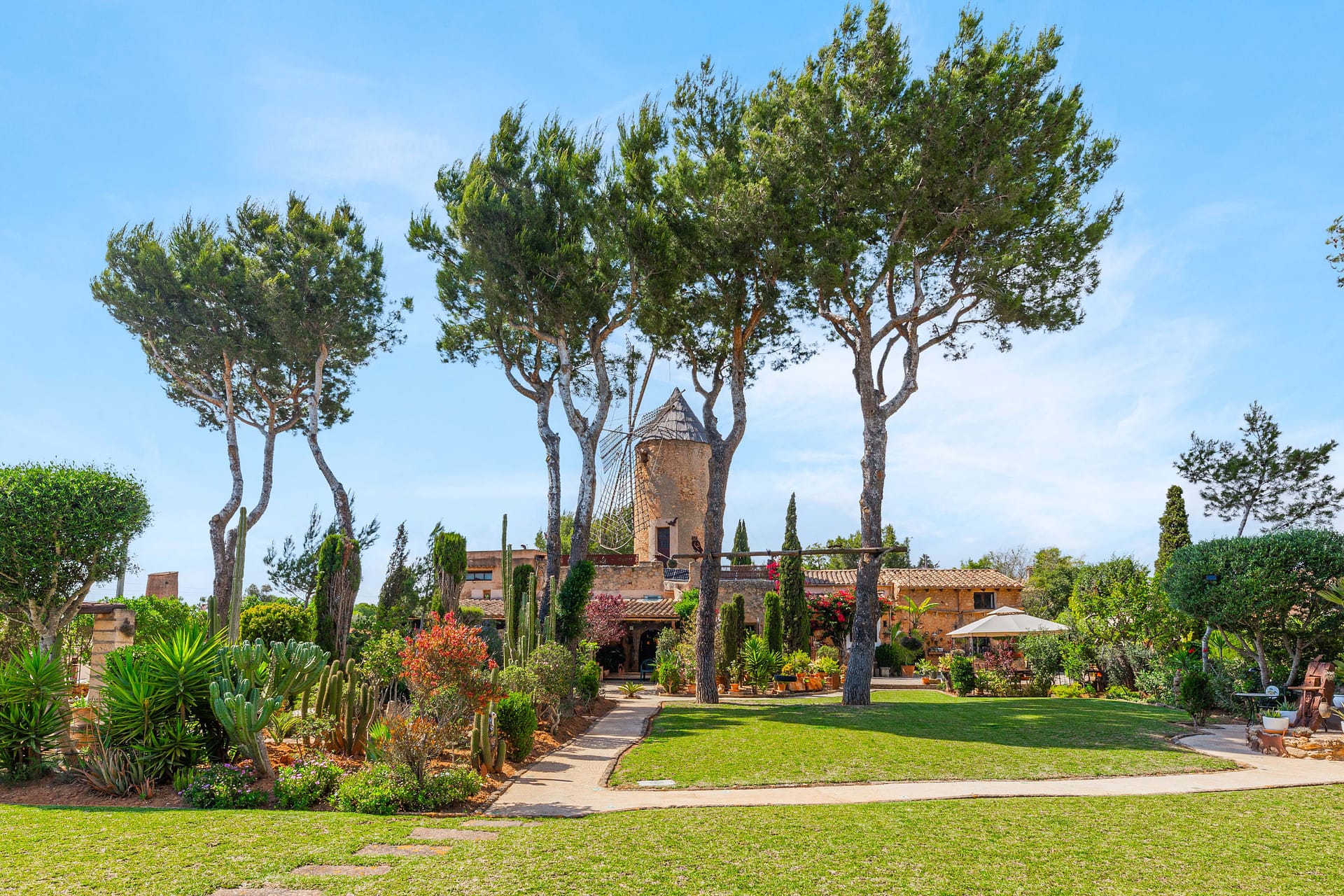 This meticulously restored, authentic windmill serves as a private oasis and secure investment, preserving a luxurious and highly private home alongside a piece of Mallorcan history and tradition. Situated in the heart of the island, this beautiful property seamlessly blends into a charming village with excellent connectivity. For more than three decades, the same dedicated family has owned this remarkable estate, fostering a deep connection to its unique character. Initially captivated by its charm, they embarked on a careful restoration, breathing new life into the ruins while preserving their magical essence. Their commitment has not only maintained the timeless beauty of the house but also enhanced its warmth and character, making it a unique home. The property consists of a main house and a separate guest house. The main house features rooms with high ceilings and a combination of traditional and modern elements. The centerpiece is the walkable mill tower with its original stone staircase, exceptionally well-preserved and stately. The completely independent guest house, equipped with a valid vacation rental license, offers comfortable living spaces and modern amenities. This secluded oasis boasts a professionally landscaped garden that has evolved into a true Garden of Eden over the past 30 years. Surrounding the property are tranquil water features and beautifully designed seating areas, perfect for year-round enjoyment. When the sun sets, the garden is illuminated, creating a mesmerizing ambiance. Additional features include various modern amenities and extensive property documentation. This property not only offers a luxurious lifestyle but also a rare opportunity to own a piece of Mallorcan heritage. Extras: Own well.