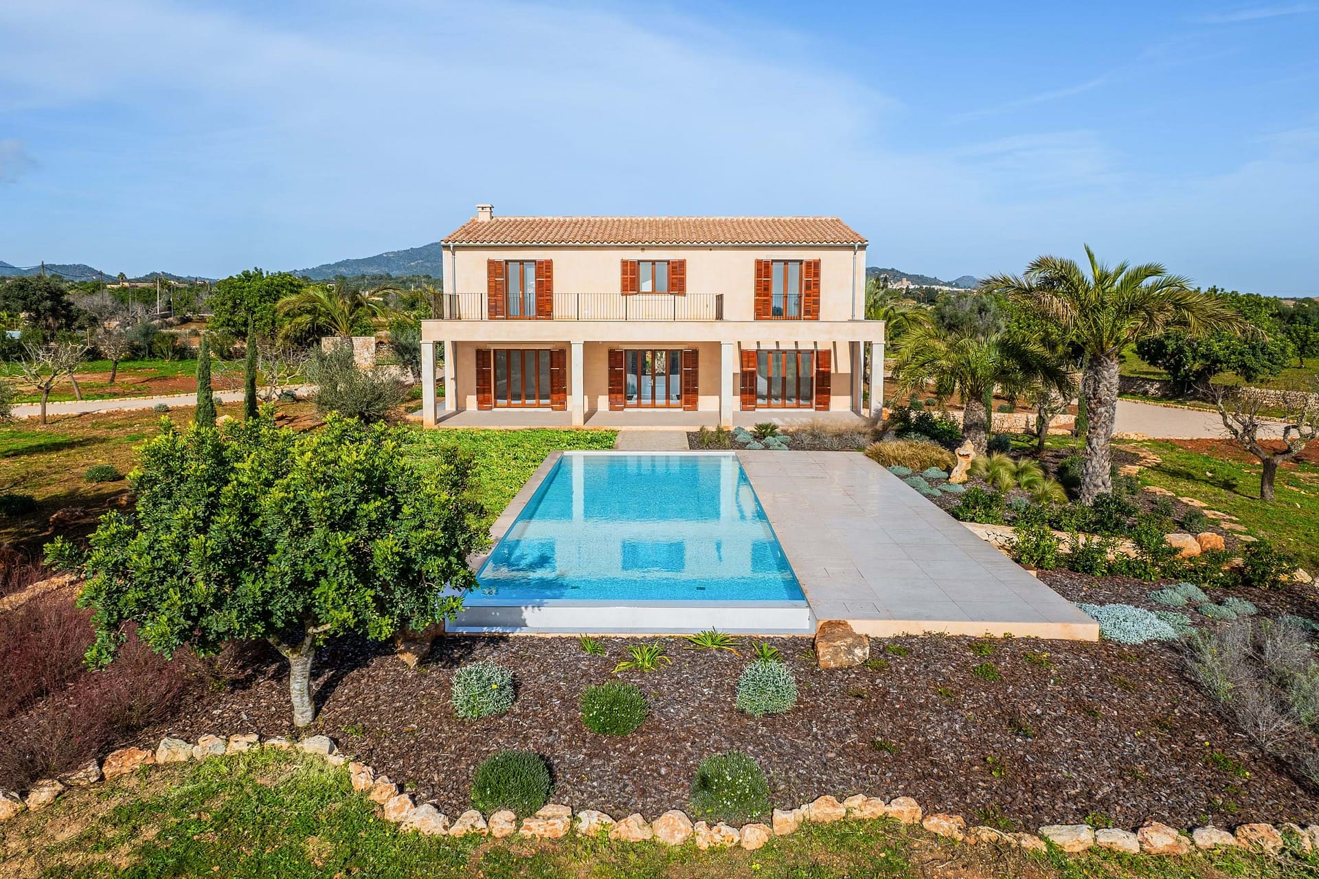 Set on an expansive plot of approximately 16,870 m² and accessed via an elegant wrap-around driveway, this newly completed finca offers total privacy, open countryside views, and a refined sense of calm. Surrounded by nature and framed by distant mountains, the property is ready to move into and perfectly suited for those seeking a peaceful yet sophisticated Mediterranean lifestyle. Mediterranean architectural details blend seamlessly with modern, understated interiors, creating a home that feels timeless, warm, and effortlessly livable.