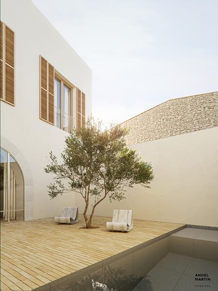 The approved design features a two-bedroom, three-bathroom townhouse arranged over multiple levels and centered around a generous private courtyard with swimming pool, a true rarity in the old town. Additional highlights include an open kitchen and dining area, a second-floor living room with terrace, wine cellar, fireplace, and private garage. A turnkey-ready opportunity to create a bespoke Mediterranean home or high-demand resale property in Santanyí. Contact The Agency Mallorca today for full plans, pricing, and further project details.