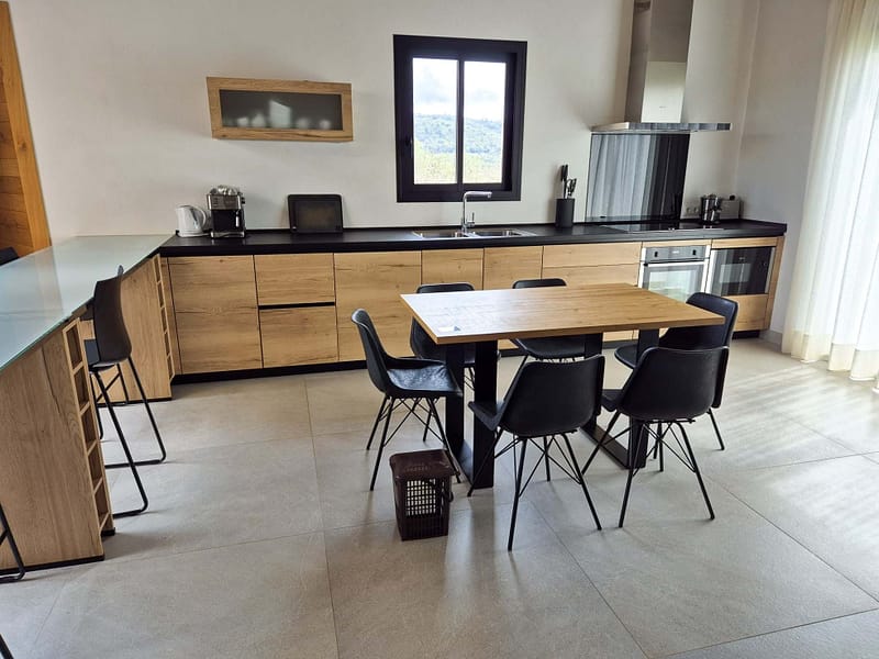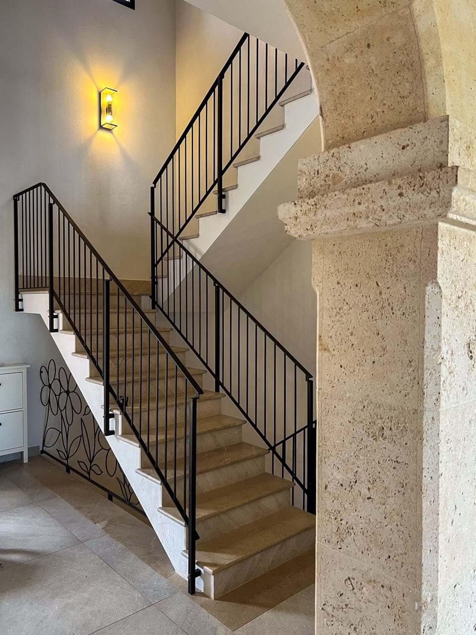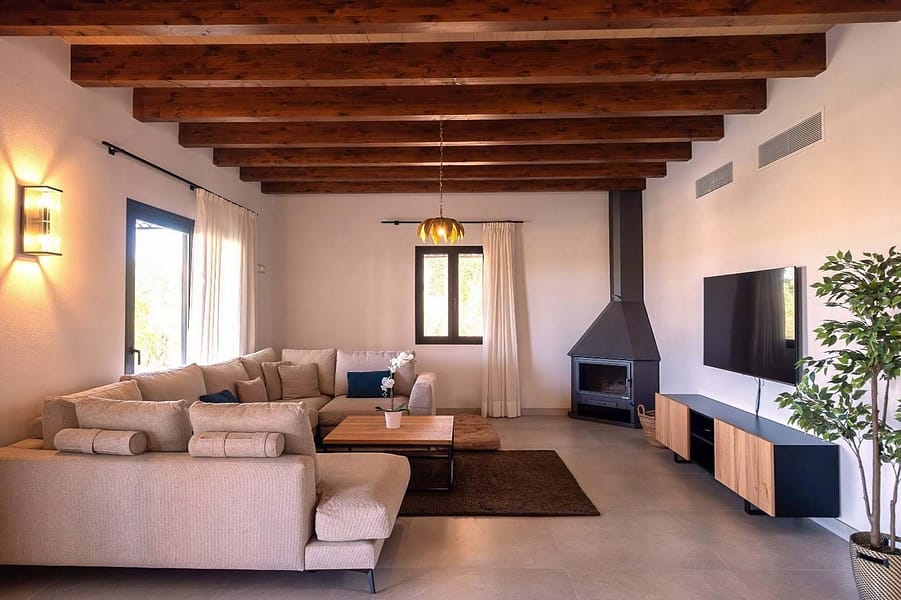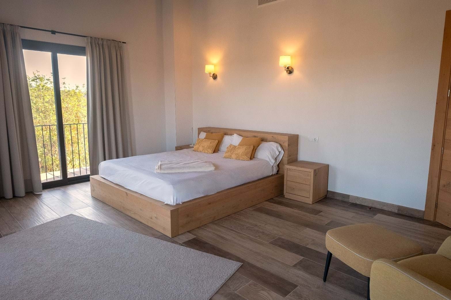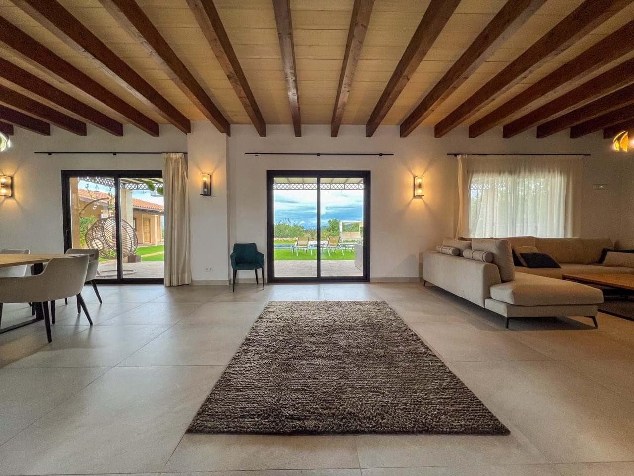The main house features six beautifully appointed bedrooms and six bathrooms, designed for comfort and elegance. Interiors are finished with high-quality materials, blending warm Mediterranean textures with modern design elements. Highlights include: