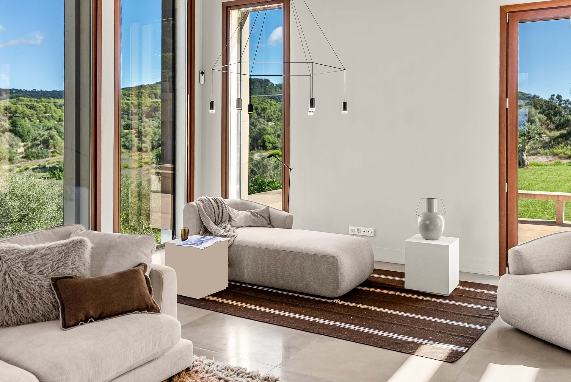 Sustainability and efficiency are key elements of the property, with a self-sufficient energy system including solar panels, heat pump, private water supply and advanced insulation. An emergency generator ensures uninterrupted comfort.