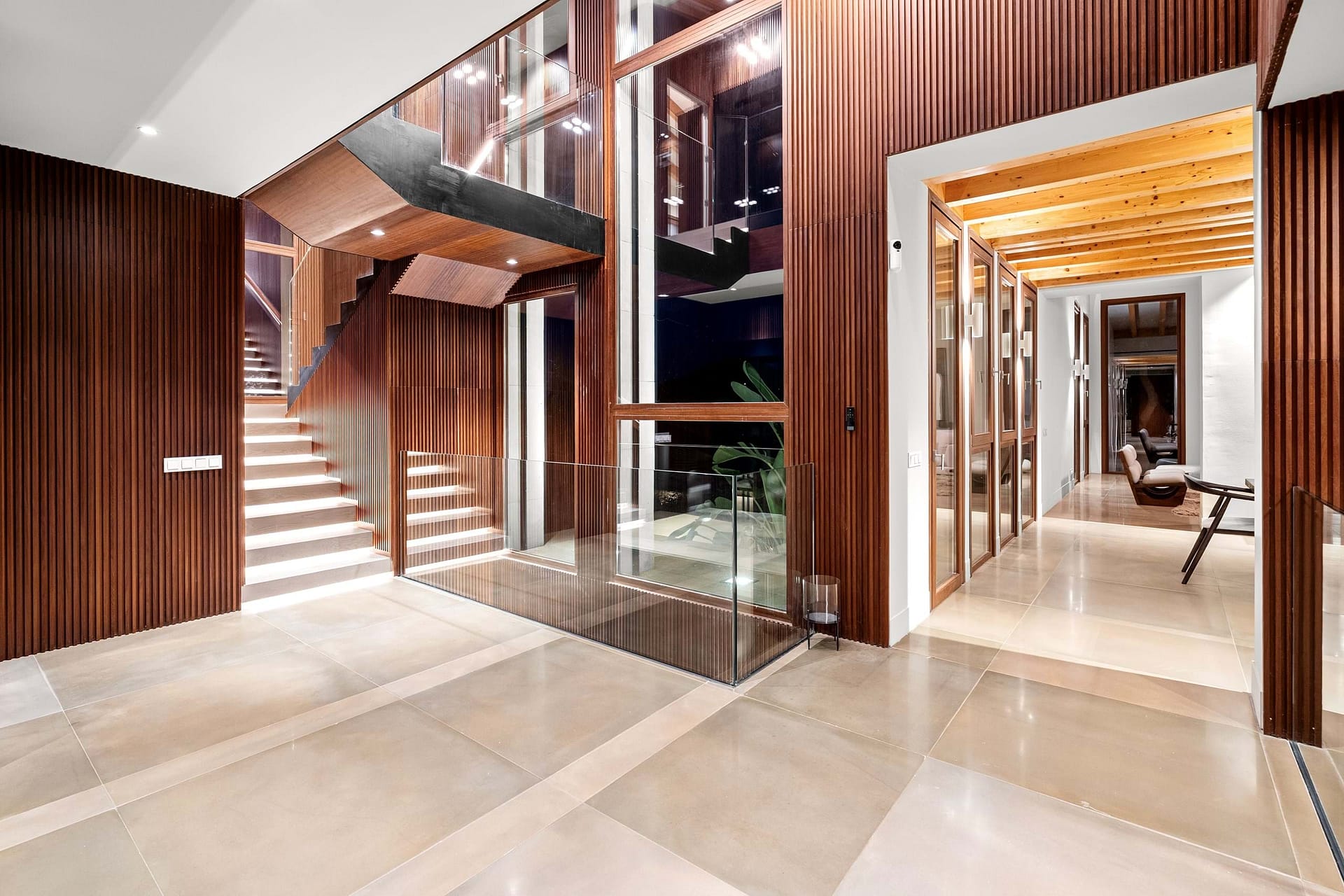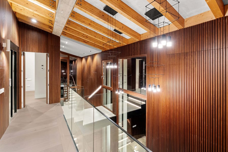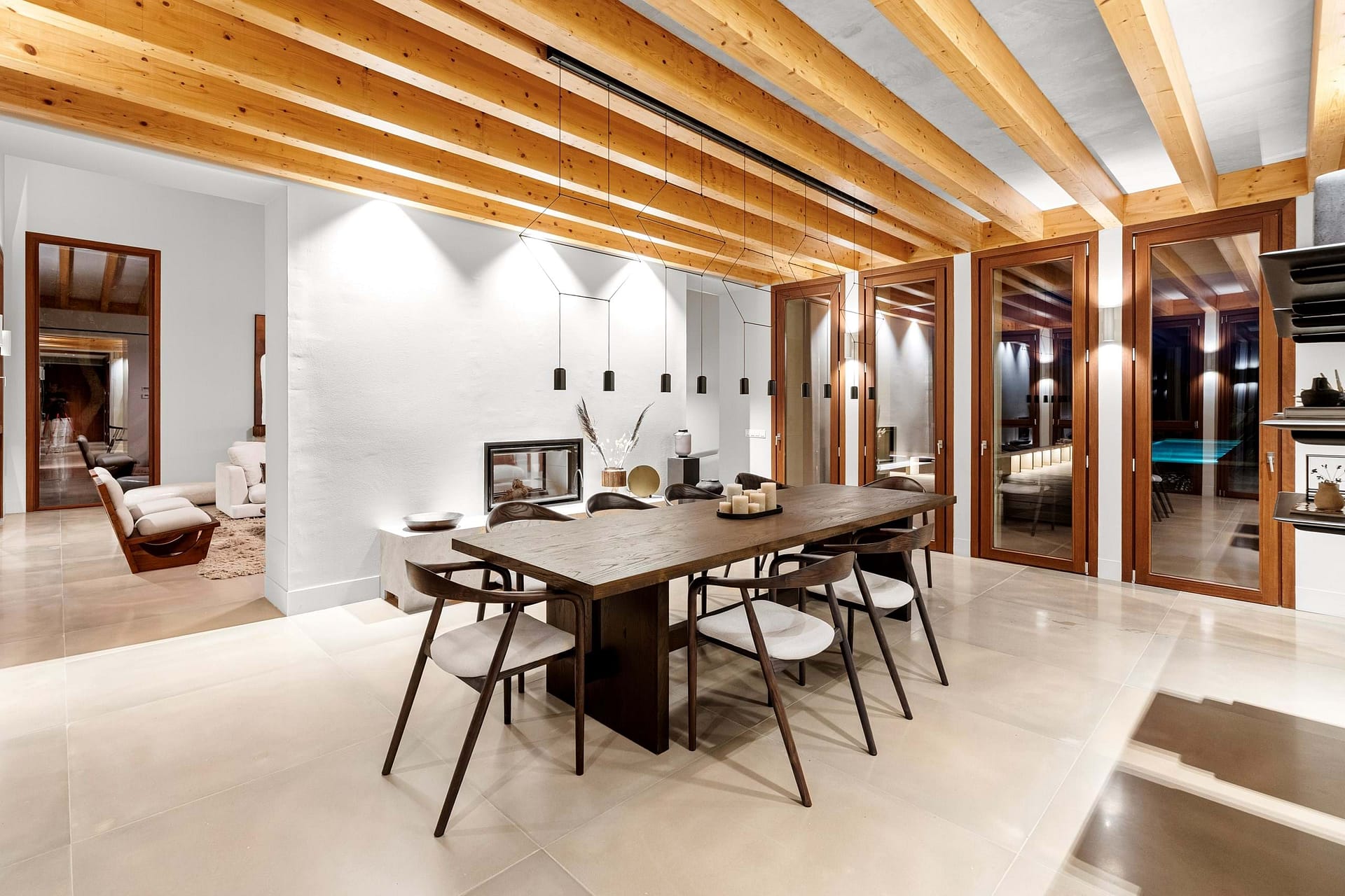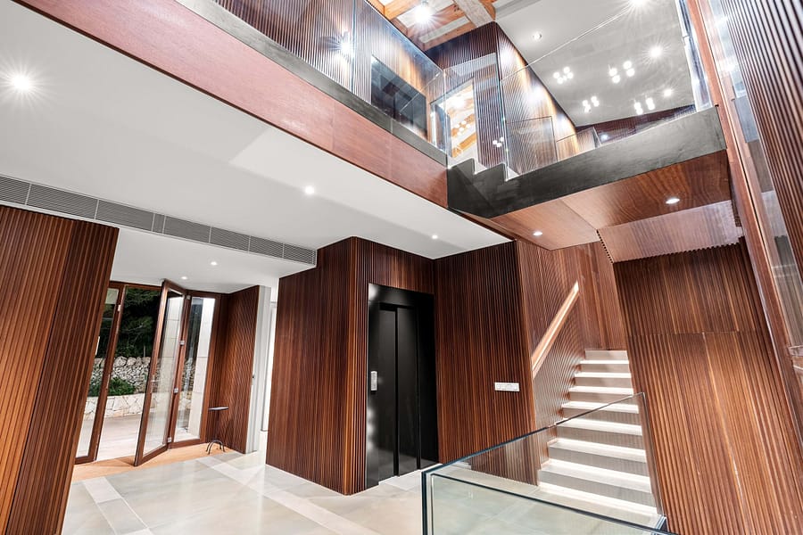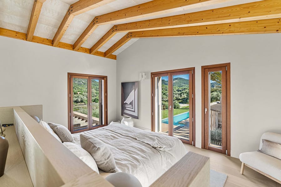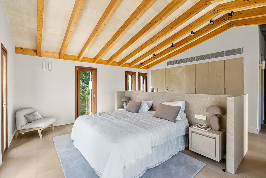 The main residence offers over 450 m² of refined living space, designed to the highest standards. Clean architectural lines, natural stone elements and floor-to-ceiling windows create a seamless connection between indoor and outdoor living, a key feature for high-end properties for sale in Felanitx and the surrounding area.
