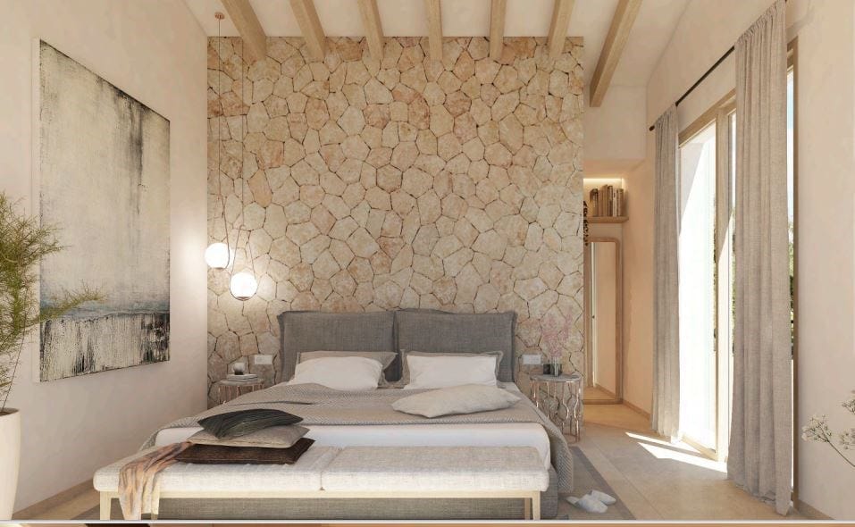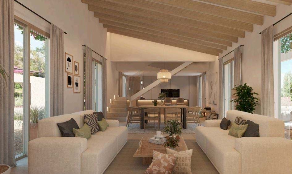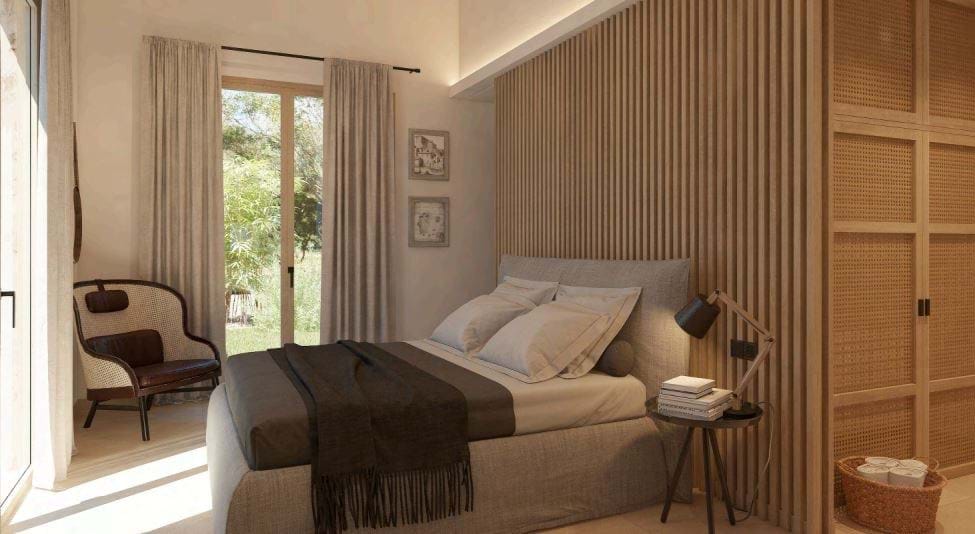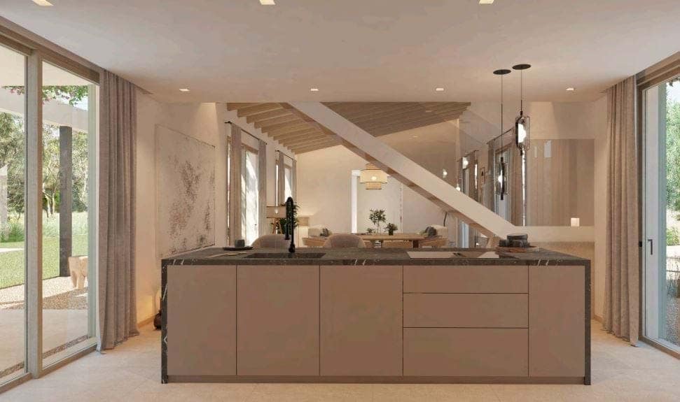 Nestled in the serene area of S’Horta and just moments away from the idyllic Cala Brafi beach, this finca presents a unique blend of tranquility and luxurious living tailored for the discerning. Currently under construction, Cala Brafi Finca stands proudly on a sprawling 15,011 square meters of lush landscape, promising exclusivity and privacy. This exquisite property spans 180 square meters of impeccably designed living space, complete with four elegant bedrooms and five modern bathrooms, each a sanctuary of comfort. The finca marries traditional Mediterranean architecture with contemporary aesthetics, creating an architectural gem that is both inviting and sophisticated. Upon entering the estate, you are greeted by a verdant Mediterranean garden, bursting with vibrant bougainvillea and olive trees that frame the sun-drenched facade. The outdoor areas are a perfect representation of Mallorcan charm, designed for relaxation and elegant entertaining alike. Inside, the finca exudes a quiet elegance with its minimalist decor and soothing color palette. Natural light floods every room, enhancing the handpicked furnishings and bespoke finishes. The living area merges sleek modernity with welcoming warmth, offering a spacious environment for gatherings. The state-of-the-art kitchen is both stylish and functional, appealing to culinary enthusiasts with its top-tier appliances. Each bedroom offers a private escape with direct access to the beautiful outdoors, ensuring breathtaking views of the finca’s peaceful surroundings. The master bedroom is particularly impressive, featuring a distinctive stone wall that adds rustic charm to the space, while floor-to-ceiling windows provide panoramic views of the stunning Mallorcan landscape. Cala Brafi Finca is more than a home; it’s a lifestyle choice for those who seek a life of luxury and tranquility in Mallorca. With its elegant design, expansive grounds, and proximity to Cala Brafi beach, this finca is the perfect sanctuary for those looking to immerse themselves in the beauty of the Mediterranean. Discover the pinnacle of Mallorcan living at Cala Brafi Finca, where the beauty of nature is seamlessly integrated with sophisticated living, creating a home that is not just a place to live, but a place to thrive.