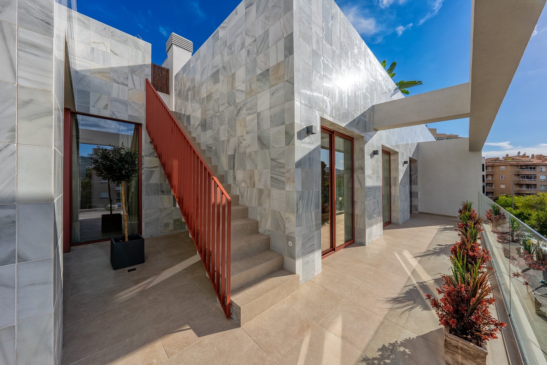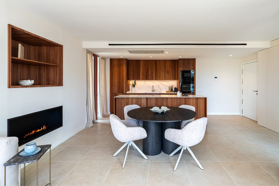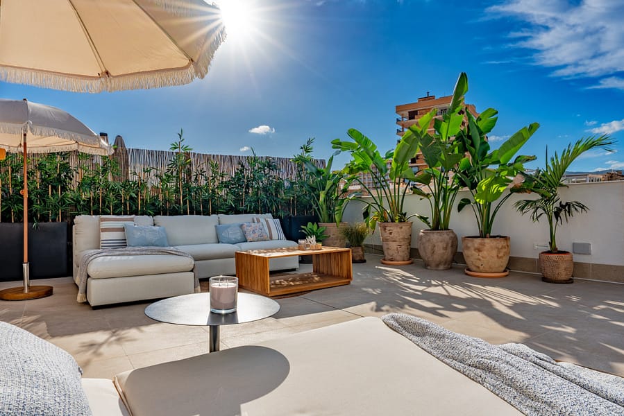 This sophisticated three-bedroom penthouse in the peaceful Son Dameto enclave offers the ultimate Palma lifestyle, featuring a seamless blend of contemporary architecture and 140 m² of private outdoor space across a balcony and expansive rooftop terrace. The 116 m² interior is sold fully furnished and includes two bathrooms, a guest toilet, and a tailor-made kitchen equipped with premium Miele appliances and porcelain countertops.