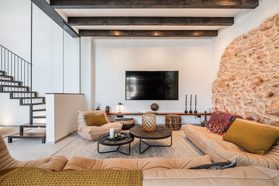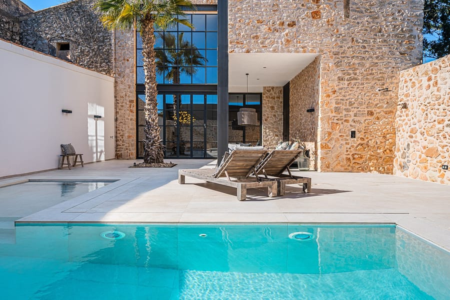 Located in the heart of Santanyí, Mallorca, just a short three-minute walk from the vibrant main square, this beautifully renovated townhouse represents a rare opportunity to acquire a luxury property for sale in Santanyí. Fully refurbished in 2022 to an exceptional standard, the home seamlessly blends traditional Mallorcan natural stone with contemporary metal design, creating a unique and highly desirable residence.
